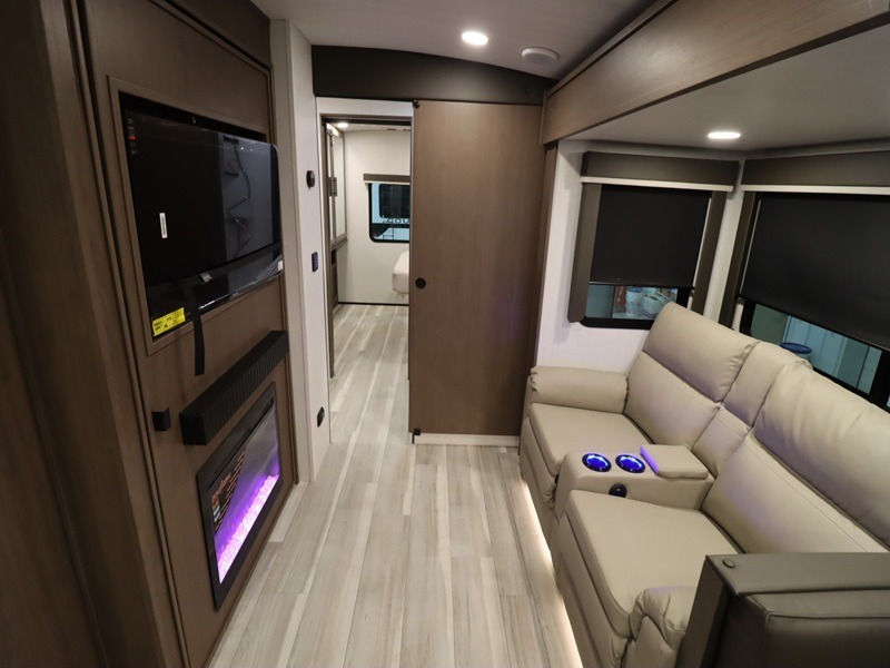 Solar Flex Protect, Fireplace, Electric Stabilizer jacks, 50-amp service, 2nd 15K A/C, Theatre Seating, Refrigerator - 12V - 10cf.