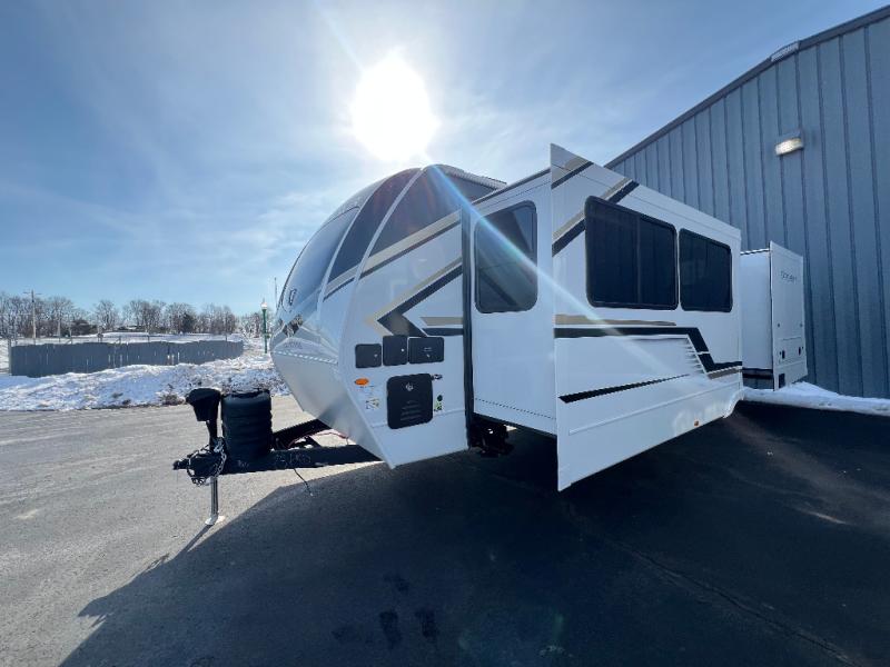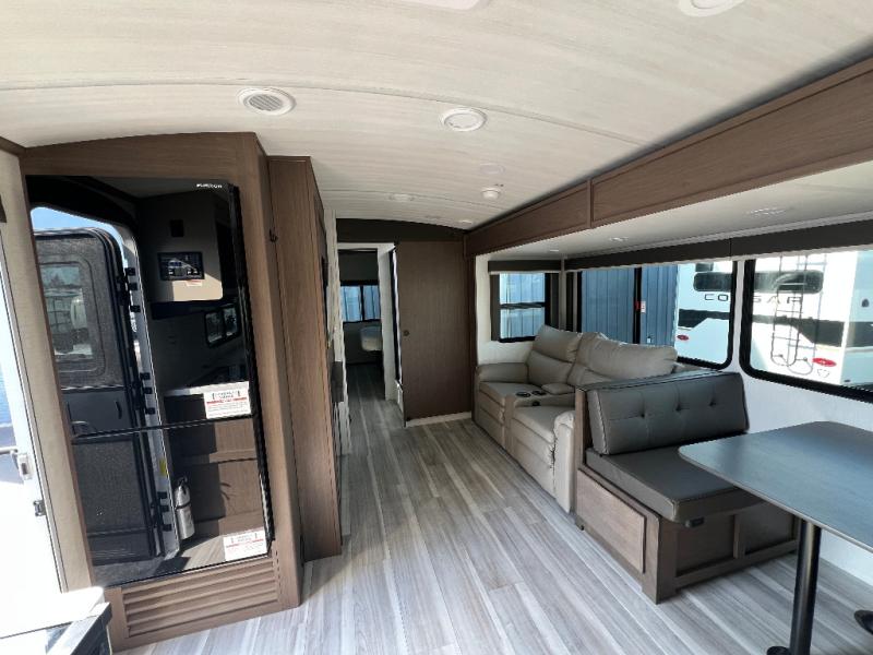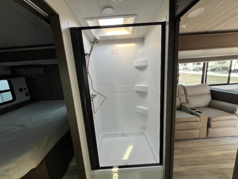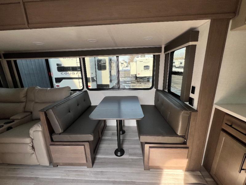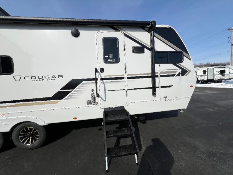The Keystone Cougar Half-Ton fifth wheel and travel trailers are known as one of America's favorites for a reason! Some of those reasons are the exclusive features that come from Keystone, like the Winegard Air 360+ omni-directional rooftop antenna, the in-floor heating ducts, and the HyperCore composite wall construction with Vixen Fibrogloss high-gloss finish. The Cougar Half-Ton has a Climate Guard protection package with heat-deflecting white sidewalls, two roof attic vents, PEX plumbing and more to enjoy four season camping. Inside, you'll love the dimmable lighting, night roller shades throughout, shower skylight, and bedside USB outlets to keep your electronics charged.