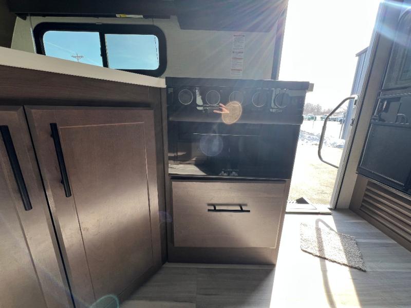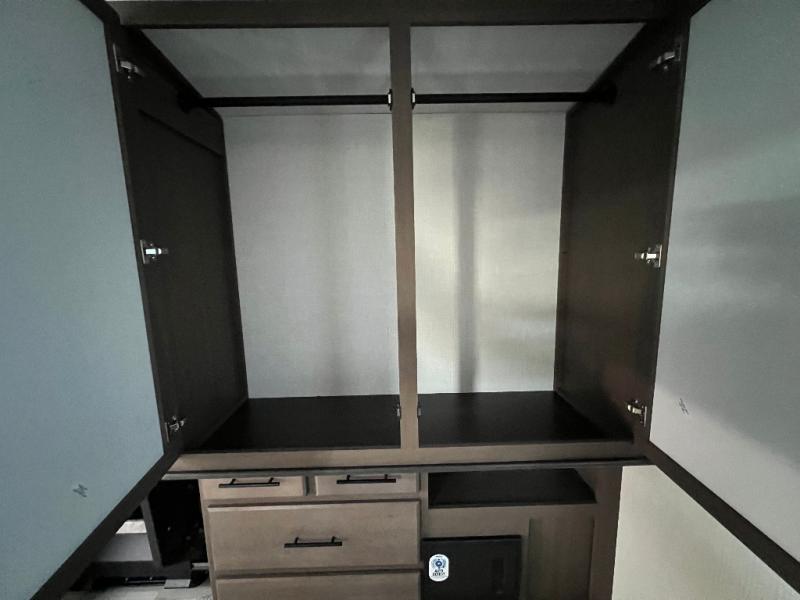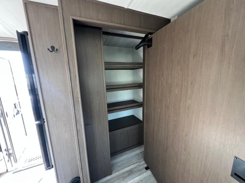 With a queen-size bed and a king bed option, this Cougar Half-Ton travel trailer shows that you can still be comfortable even while you're away from home! The bed slides out to provide more interior space and there is a wardrobe opposite near the private entry door. The main entry up front leads into a spacious combined kitchen and living area with the front kitchen offering plenty of counter space and overhead storage. There is a 12-volt refrigerator to the left of the entry door, and access to a walk-in pantry is right around the corner from the pivoting entertainment center opposite a tri-fold sofa sleeper and booth dinette slide. This unit also features a full-width walk-thru bath giving you plenty of room to shower and change.