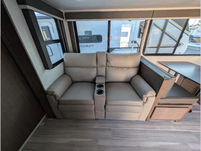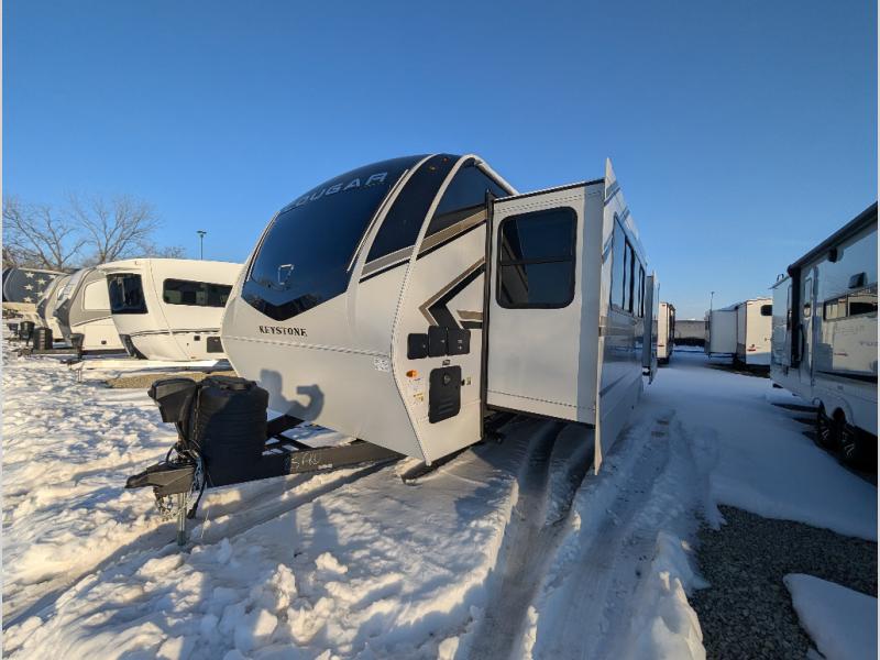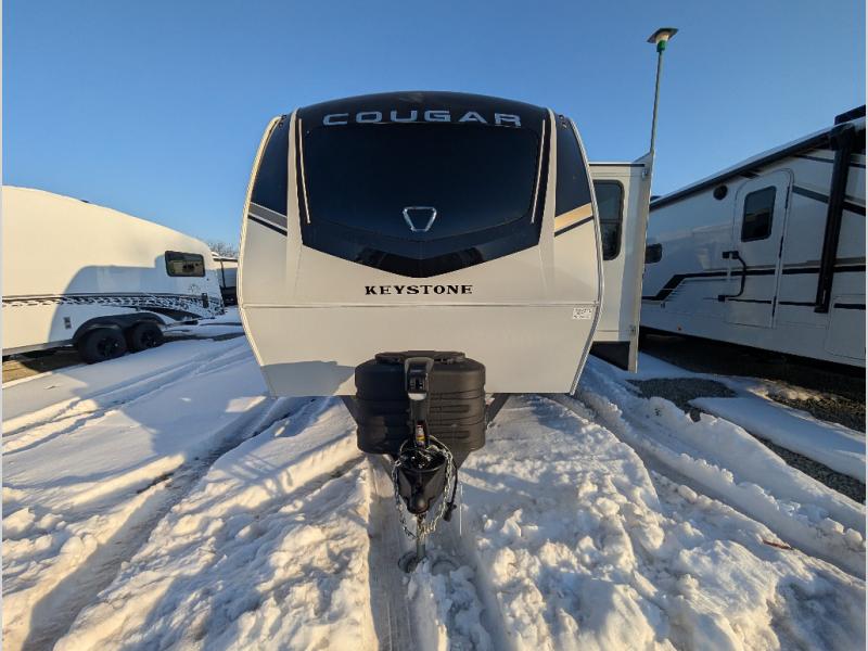 The Keystone Cougar Half-Ton fifth wheel and travel trailers are known as one of America's favorites for a reason! Some of those reasons are the exclusive features that come from Keystone, like the Winegard Air 360+ omni-directional rooftop antenna, the in-floor heating ducts, and the HyperCore composite wall construction with Vixen Fibrogloss high-gloss finish. The Cougar Half-Ton has a Climate Guard protection package with heat-deflecting white sidewalls, two roof attic vents, PEX plumbing and more to enjoy four season camping. Inside, you'll love the dimmable lighting, night roller shades throughout, shower skylight, and bedside USB outlets to keep your electronics charged.