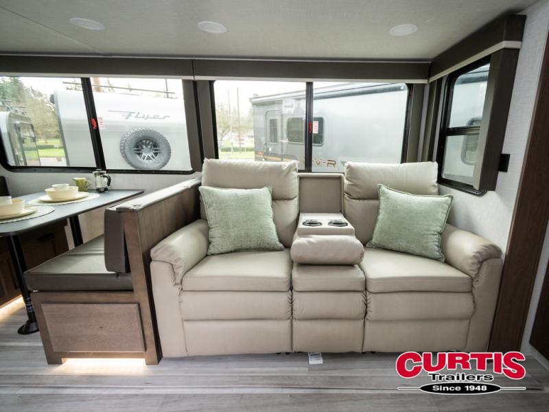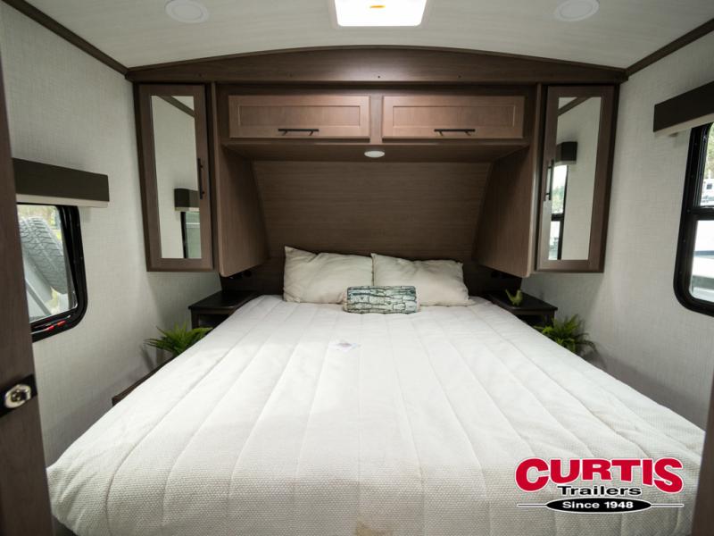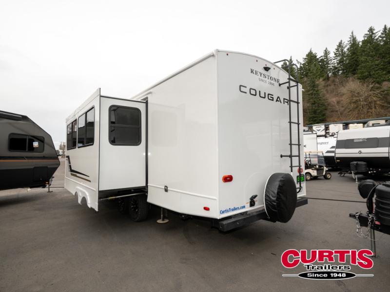 The Keystone Cougar Half-Ton fifth wheel and travel trailers are known as one of America's favorites for a reason! Some of those reasons are the exclusive features that come from Keystone, like the Winegard Air 360+ omni-directional rooftop antenna, the in-floor heating ducts, and the HyperCore composite wall construction with Vixen Fibrogloss high-gloss finish. The Cougar Half-Ton has a Climate Guard protection package with heat-deflecting white sidewalls, two roof attic vents, PEX plumbing and more to enjoy four season camping. Inside, you'll love the dimmable lighting, night roller shades throughout, shower skylight, and bedside USB outlets to keep your electronics charged.