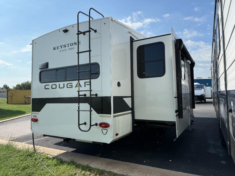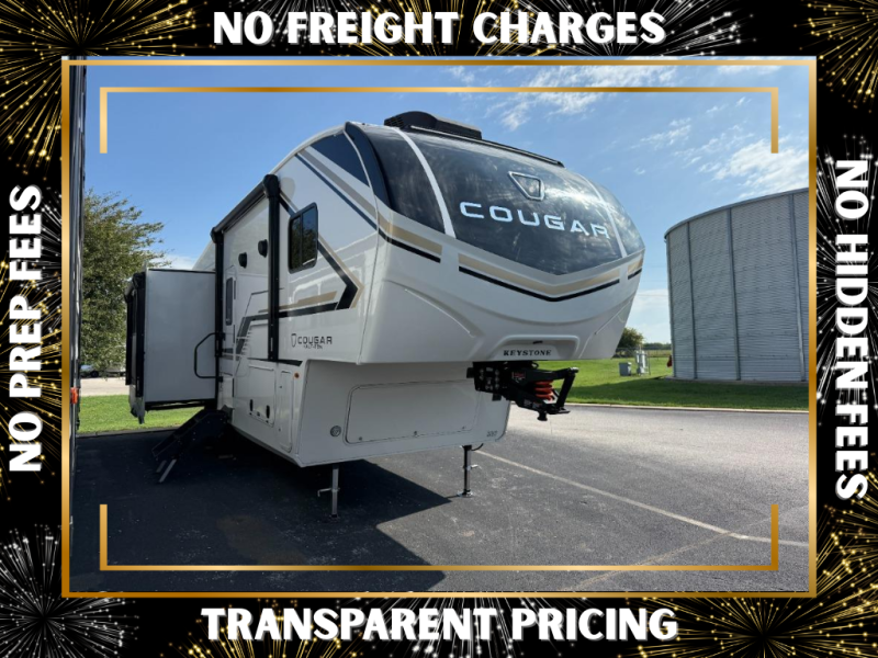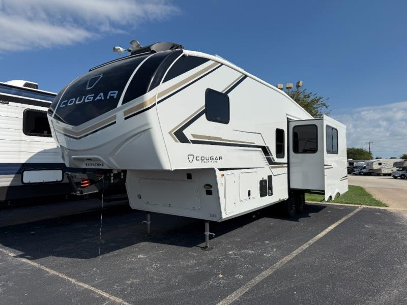 The Keystone Cougar Half-Ton fifth wheel and travel trailers are known as one of America's favorites for a reason! Some of those reasons are the exclusive features that come from Keystone, like the Winegard Air 360+ omni-directional rooftop antenna, the in-floor heating ducts, and the HyperCore composite wall construction with Vixen Fibrogloss high-gloss finish. The Cougar Half-Ton has a Climate Guard protection package with heat-deflecting white sidewalls, two roof attic vents, PEX plumbing and more to enjoy four season camping. Inside, you'll love the dimmable lighting, night roller shades throughout, shower skylight, and bedside USB outlets to keep your electronics charged.