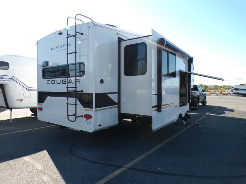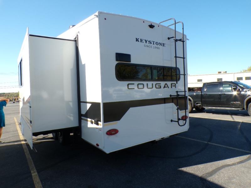 The Keystone Cougar Half-Ton fifth wheel and travel trailers are known as one of America's favorites for a reason! Some of those reasons are the exclusive features that come from Keystone, like the Winegard Air 360+ omni-directional rooftop antenna, the in-floor heating ducts, and the HyperCore composite wall construction with Vixen Fibrogloss high-gloss finish. The Cougar Half-Ton has a Climate Guard protection package with heat-deflecting white sidewalls, two roof attic vents, PEX plumbing and more to enjoy four season camping. Inside, you'll love the dimmable lighting, night roller shades throughout, shower skylight, and bedside USB outlets to keep your electronics charged.