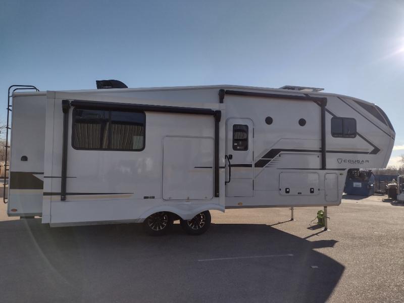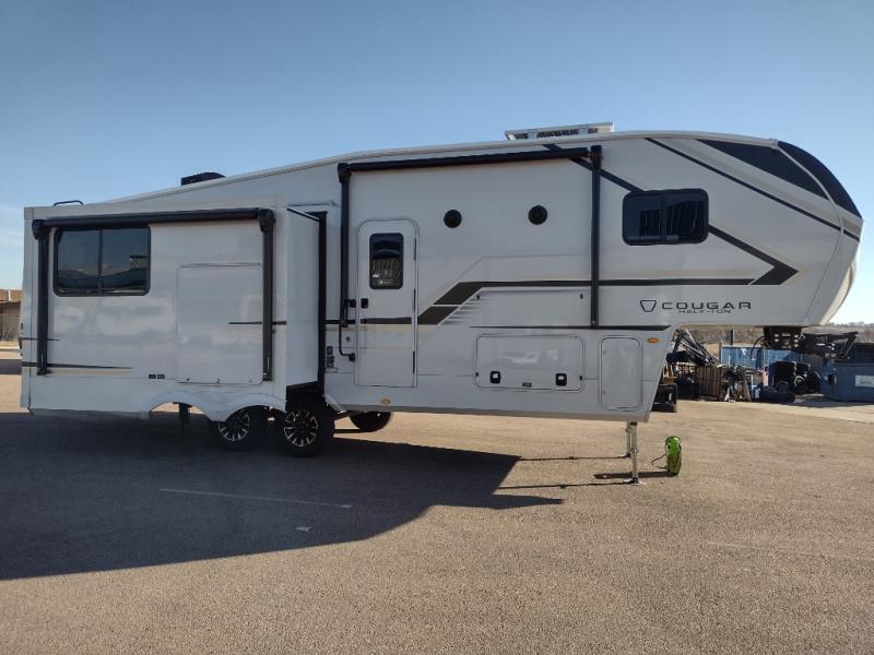 The Keystone Cougar Half-Ton fifth wheel and travel trailers are known as one of America's favorites for a reason! Some of those reasons are the exclusive features that come from Keystone, like the Winegard Air 360+ omni-directional rooftop antenna, the in-floor heating ducts, and the HyperCore composite wall construction with Vixen Fibrogloss high-gloss finish. The Cougar Half-Ton has a Climate Guard protection package with heat-deflecting white sidewalls, two roof attic vents, PEX plumbing and more to enjoy four season camping. Inside, you'll love the dimmable lighting, night roller shades throughout, shower skylight, and bedside USB outlets to keep your electronics charged.