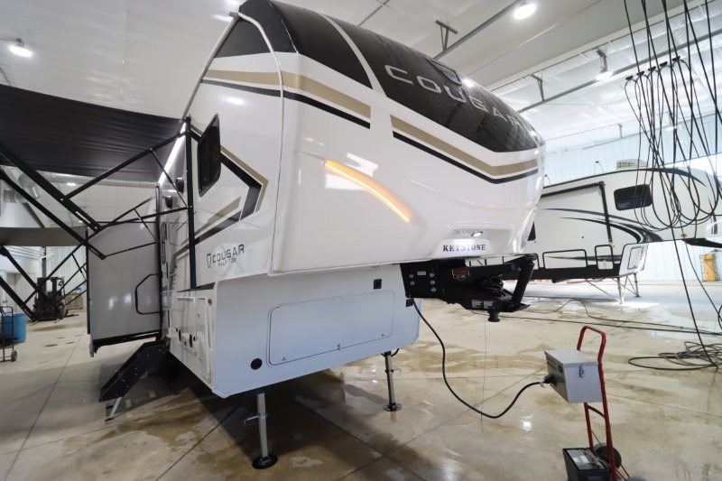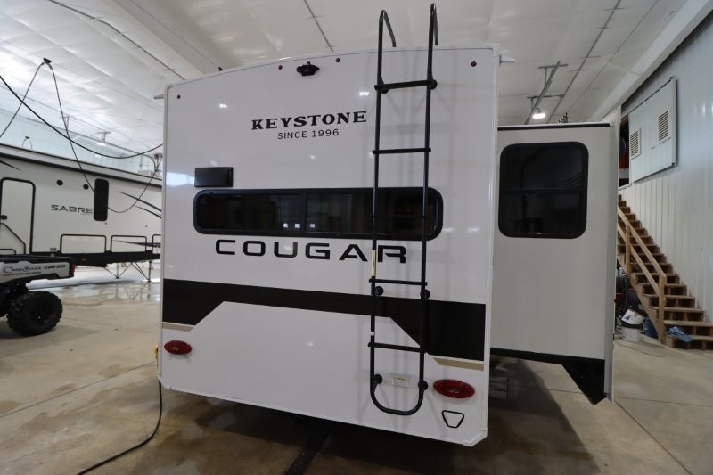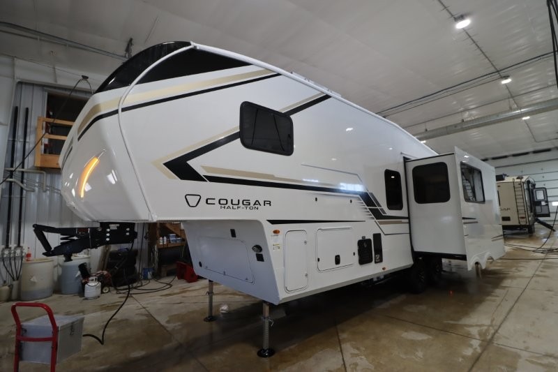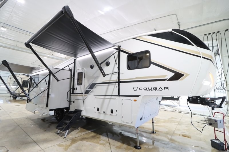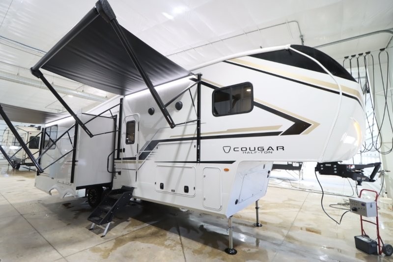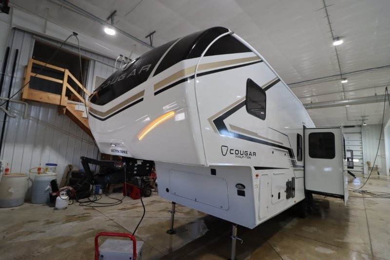 The Keystone Cougar Half-Ton fifth wheel and travel trailers are known as one of America's favorites for a reason! Some of those reasons are the exclusive features that come from Keystone, like the Winegard Air 360+ omni-directional rooftop antenna, the in-floor heating ducts, and the HyperCore composite wall construction with Vixen Fibrogloss high-gloss finish. The Cougar Half-Ton has a Climate Guard protection package with heat-deflecting white sidewalls, two roof attic vents, PEX plumbing and more to enjoy four season camping. Inside, you'll love the dimmable lighting, night roller shades throughout, shower skylight, and bedside USB outlets to keep your electronics charged.