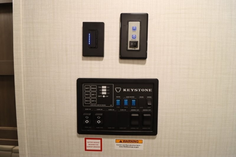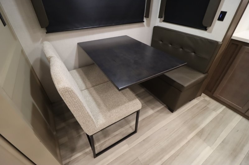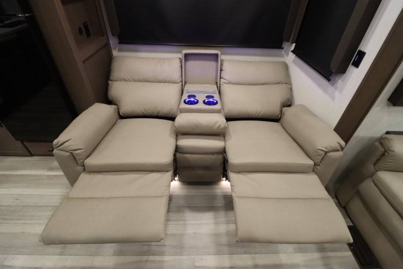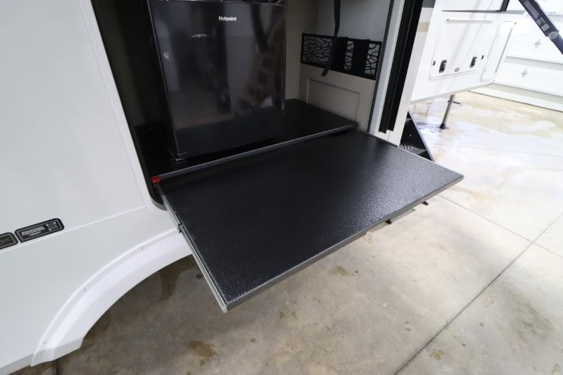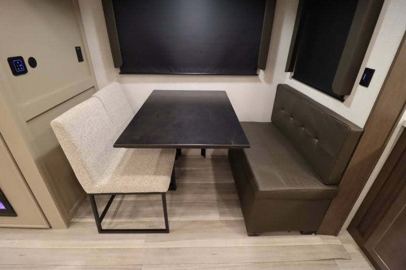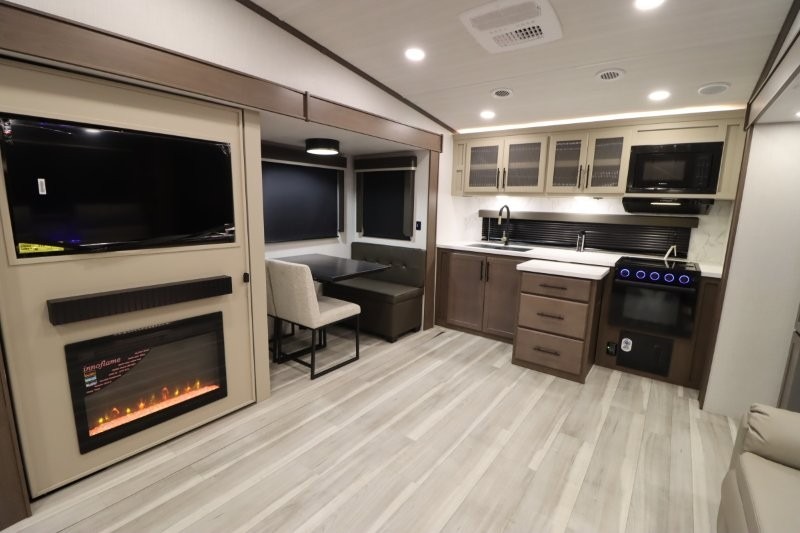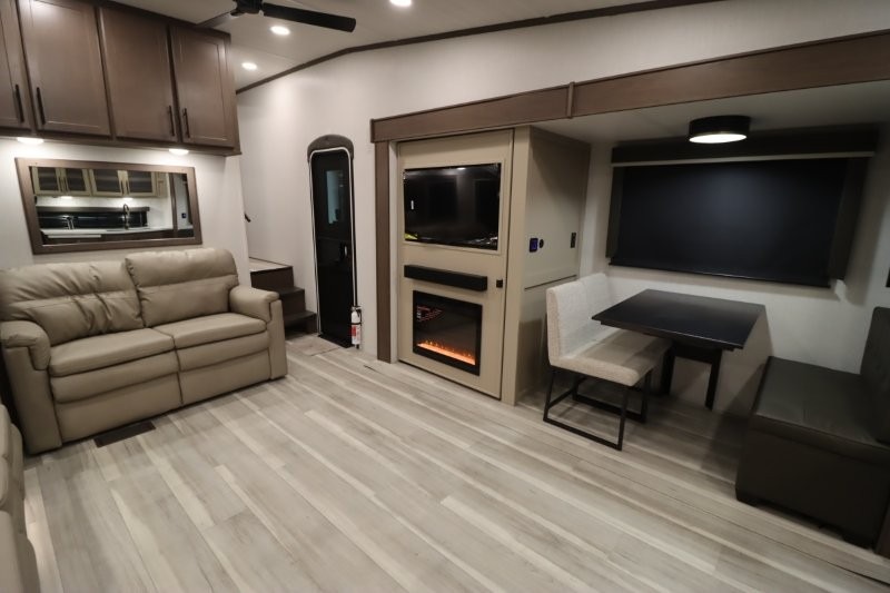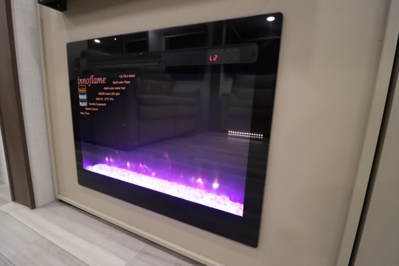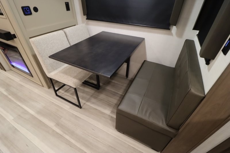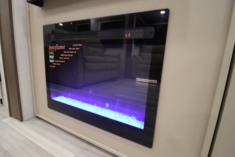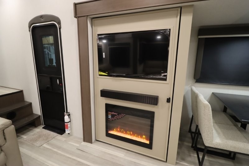 Solar Flex Protect, fireplace, 4-point auto level, 2nd power awning, 2nd 15K A/C, Theatre Seating, Refrigerator - 12V - 10cf., free standing dinette w/ottoman.