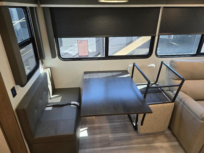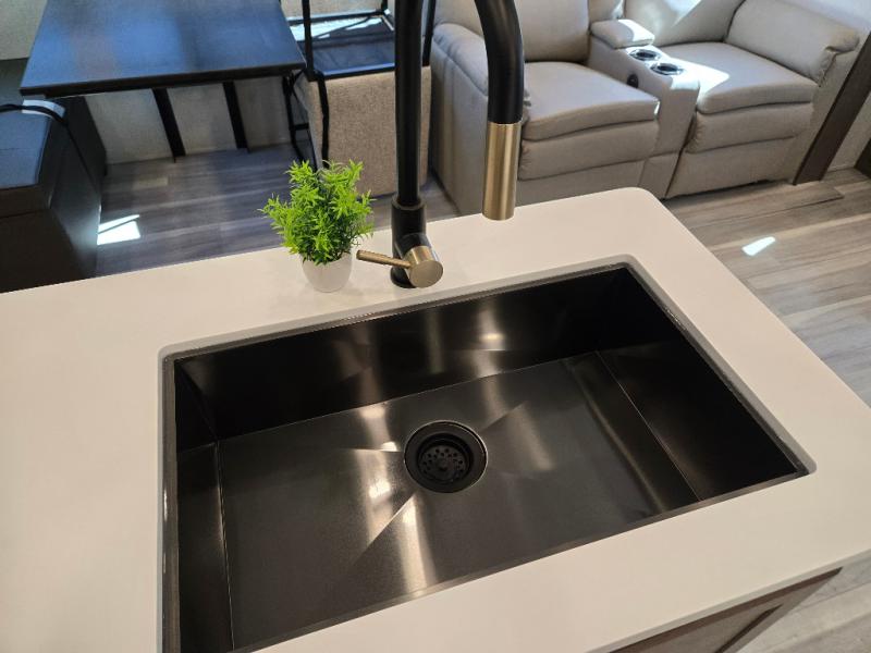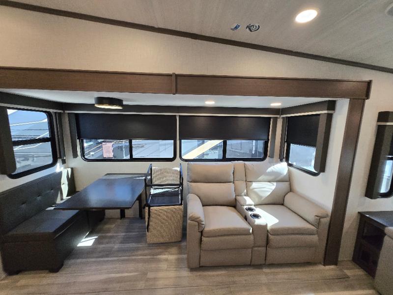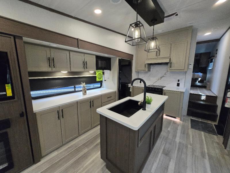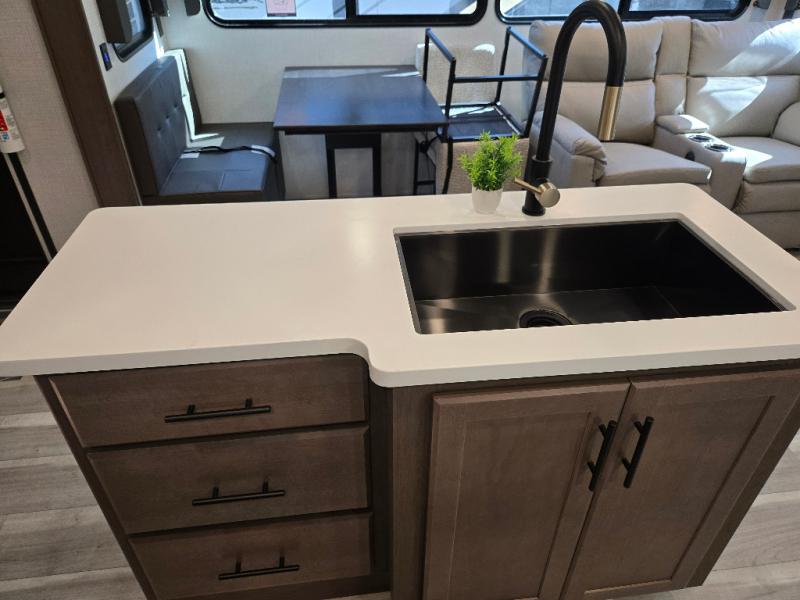 You will have the time of your life in this Cougar Half-Ton fifth wheel! There is so much comfort with the theater seating and tri-fold sleeper sofa with end tables in the living area. You also have lots of space in this area because of the opposing slides, so you can work freely around the kitchen island preparing dinner or washing dishes. The booth dinette is right next to the kitchen, so you won't have to go far to set the table. If you don't need the dinette to double as a bed, then you might be interested in switching it out for the optional free-standing table with chairs and an ottoman. You will also love the gourmet kitchen prep space with ample counter space to make your best meals!