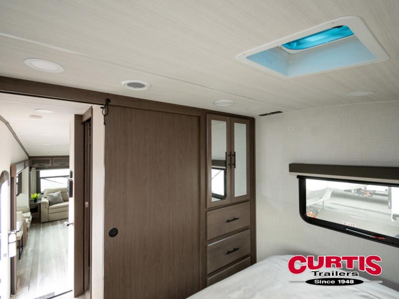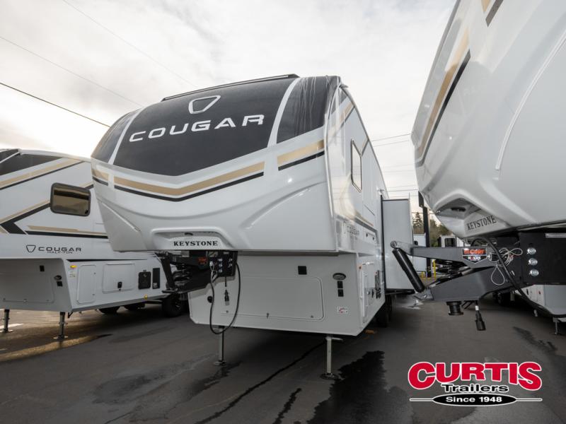 The Keystone Cougar Half-Ton fifth wheel and travel trailers are known as one of America's favorites for a reason! Some of those reasons are the exclusive features that come from Keystone, like the Winegard Air 360+ omni-directional rooftop antenna, the in-floor heating ducts, and the HyperCore composite wall construction with Vixen Fibrogloss high-gloss finish. The Cougar Half-Ton has a Climate Guard protection package with heat-deflecting white sidewalls, two roof attic vents, PEX plumbing and more to enjoy four season camping. Inside, you'll love the dimmable lighting, night roller shades throughout, shower skylight, and bedside USB outlets to keep your electronics charged.