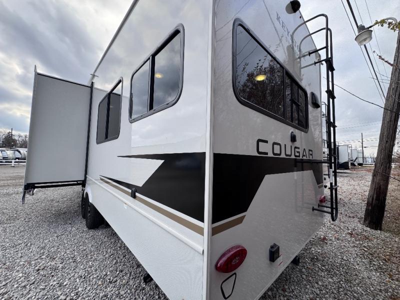 The Keystone Cougar Half-Ton fifth wheel and travel trailers are known as one of America's favorites for a reason! Some of those reasons are the exclusive features that come from Keystone, like the Winegard Air 360+ omni-directional rooftop antenna, the in-floor heating ducts, and the HyperCore composite wall construction with Vixen Fibrogloss high-gloss finish. The Cougar Half-Ton has a Climate Guard protection package with heat-deflecting white sidewalls, two roof attic vents, PEX plumbing and more to enjoy four season camping. Inside, you'll love the dimmable lighting, night roller shades throughout, shower skylight, and bedside USB outlets to keep your electronics charged.