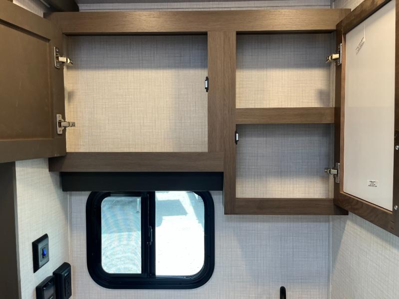 Fully Equipped Kitchen – Includes a 3-burner cooktop, microwave, 12V refrigerator, and generous pantry space.