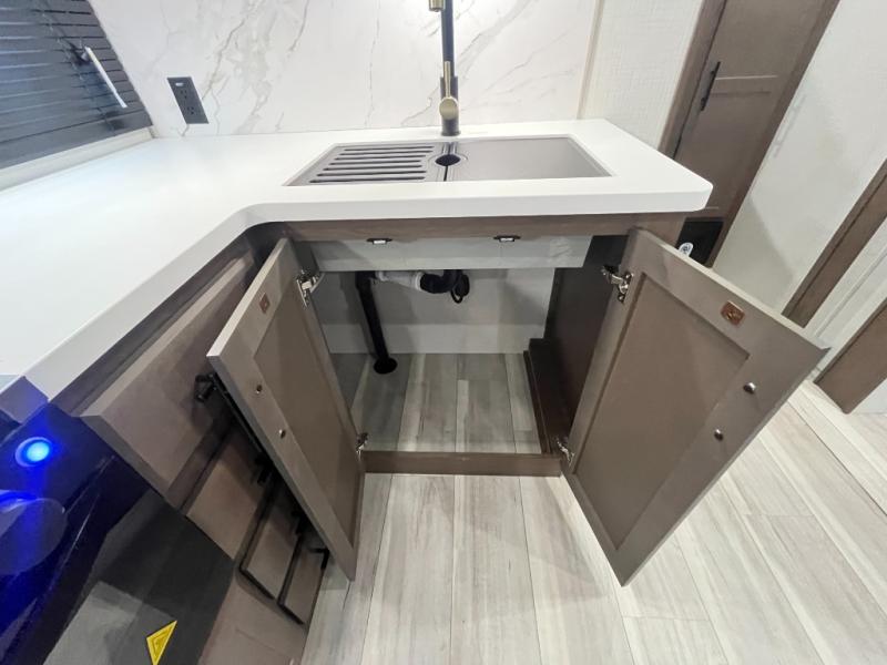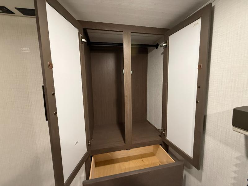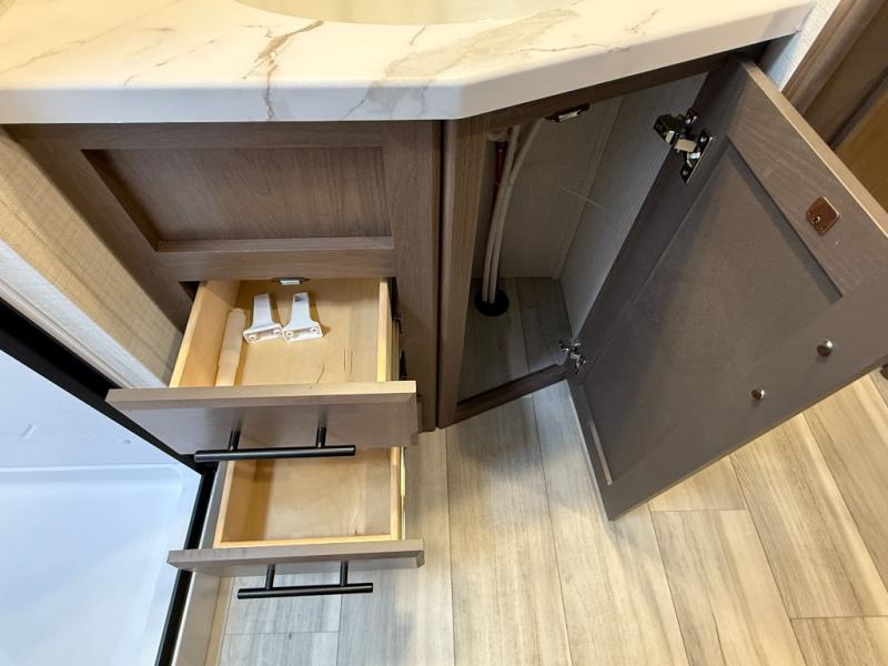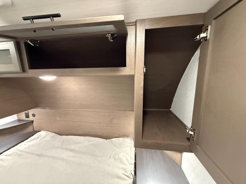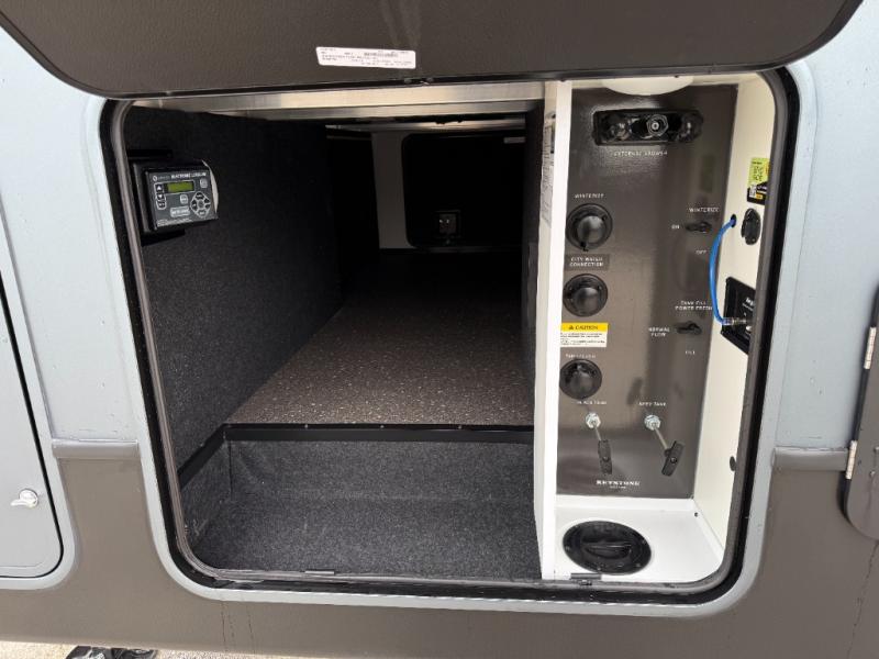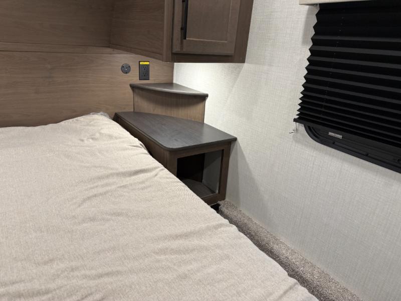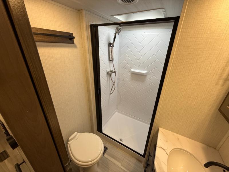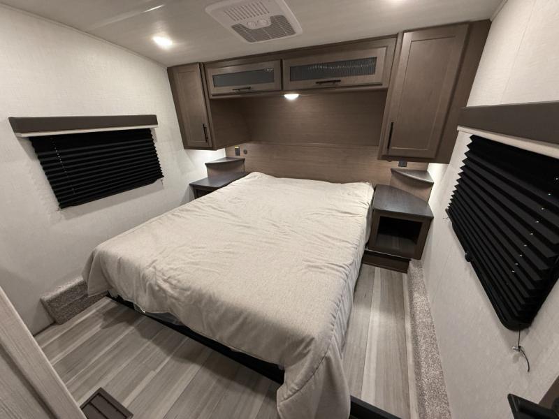 The Cougar Sport structural I-beam frame with stamped steel cross-members and outriggers, plus its AlphaPly roof membrane are what active RVers love about the construction of the Cougar line. The Cougar Sport models are no exception when it comes to a great package, as well as being smaller and lighter weight than their big brother Cougar models. A one-piece, heated and enclosed polypropylene underbelly will add protection against the elements, and the electric stabilizer jacks will provide more stability. On the inside, residential shaker style hardwood cabinet doors and decorative crown molding, plus seamless pressed countertops and an on-demand water heater will make your unit feel even more like home. You are also sure to appreciate the shiplap style decorative accent wall behind the bed, a porcelain foot flush toilet in the bathroom, plus residential kitchen hardware, and so much more.