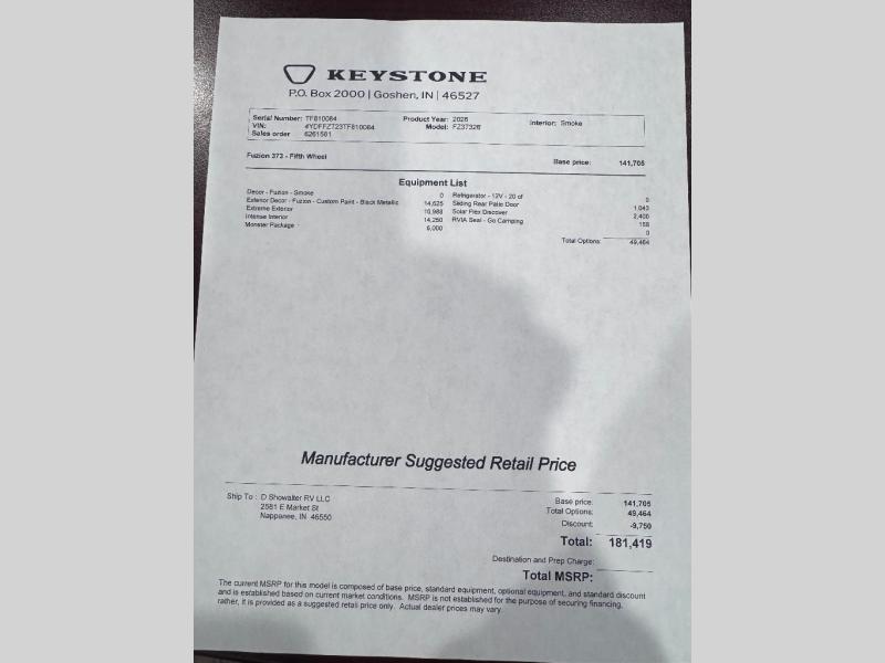 New 2026 Keystone RV Fuzion 373 Toy Hauler Fifth Wheel
