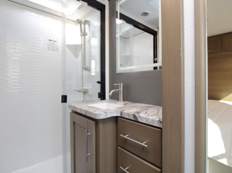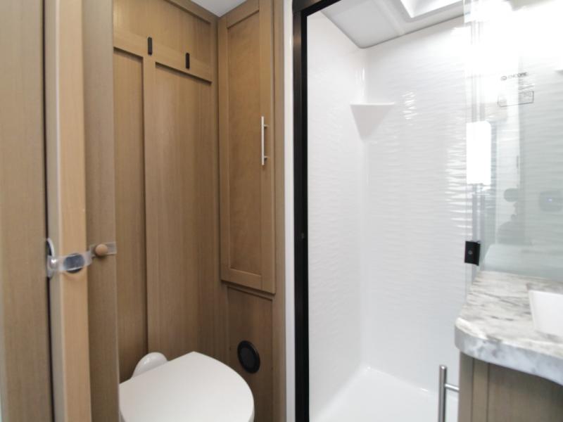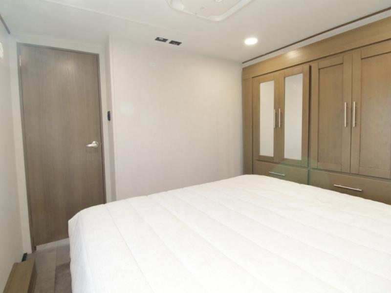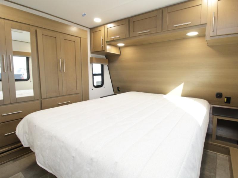Front private bedroom with a Fuzion king bed for true at-home comfort