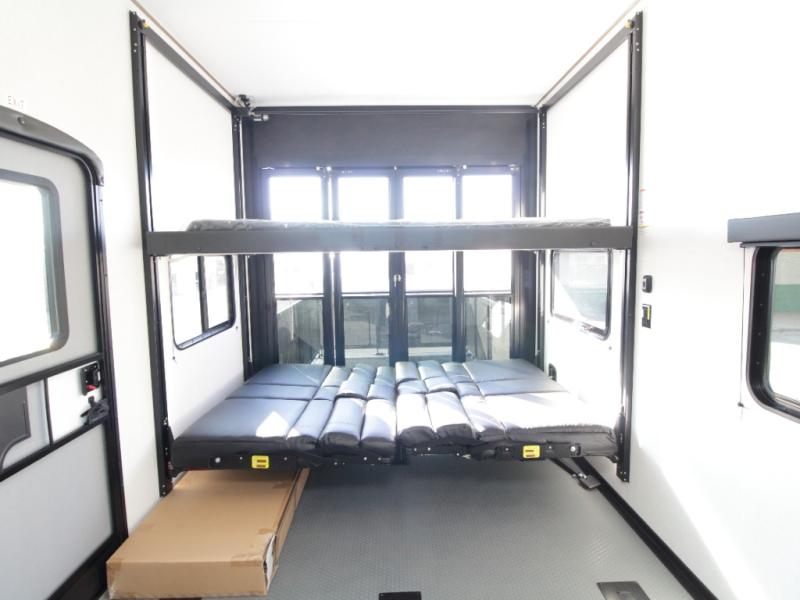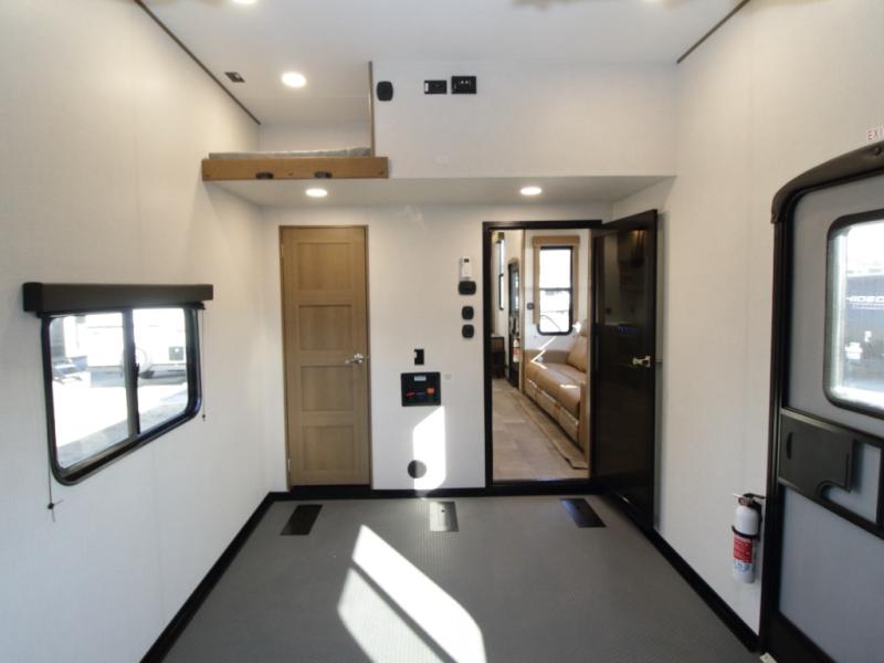 Take your adventures to the next level with the Keystone Fuzion Impact Edition 367, featuring a spacious 14' garage with a half bath and a cozy loft bunk for extra sleeping space.