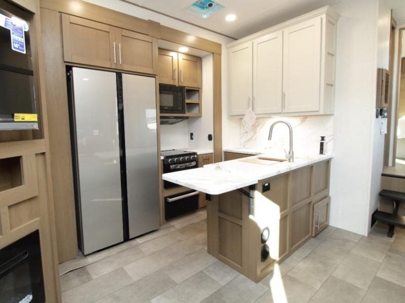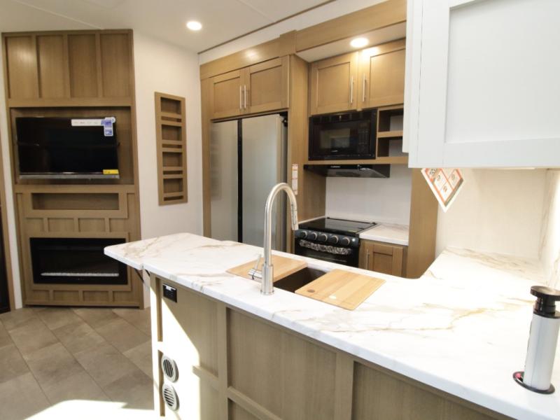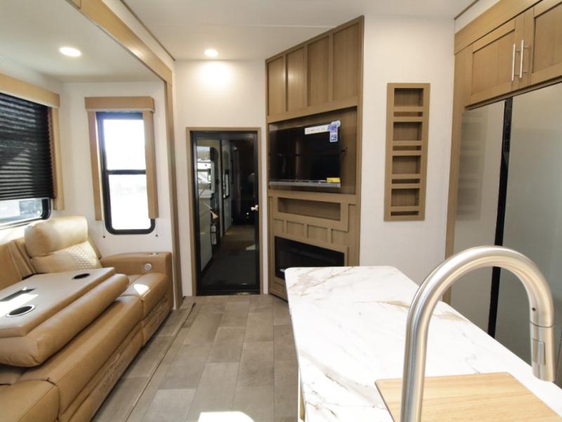The Keystone Fuzion Impact Edition 367 is perfect for campers who refuse to choose between adventure and comfort. With a true 14' garage, multiple sleeping options, and both a full and half bath, this toy hauler adapts effortlessly from hauling mode to relaxation mode. The residential kitchen, king bedroom, and cozy fireplace make it just as enjoyable when the engines are off as when they’re roaring.