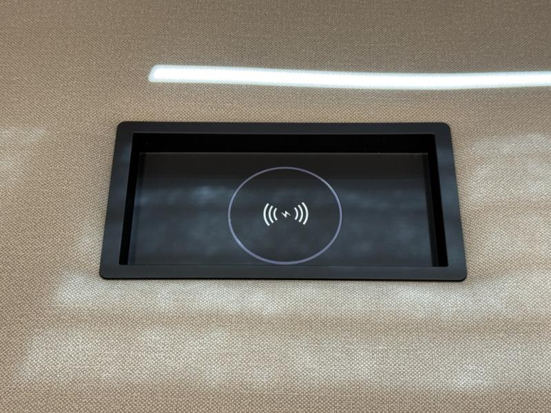Garage sleeping options: opposing sofas convert to a bed + electric queen lift bed