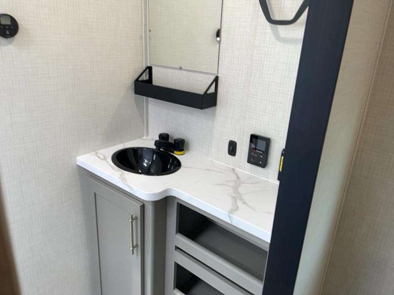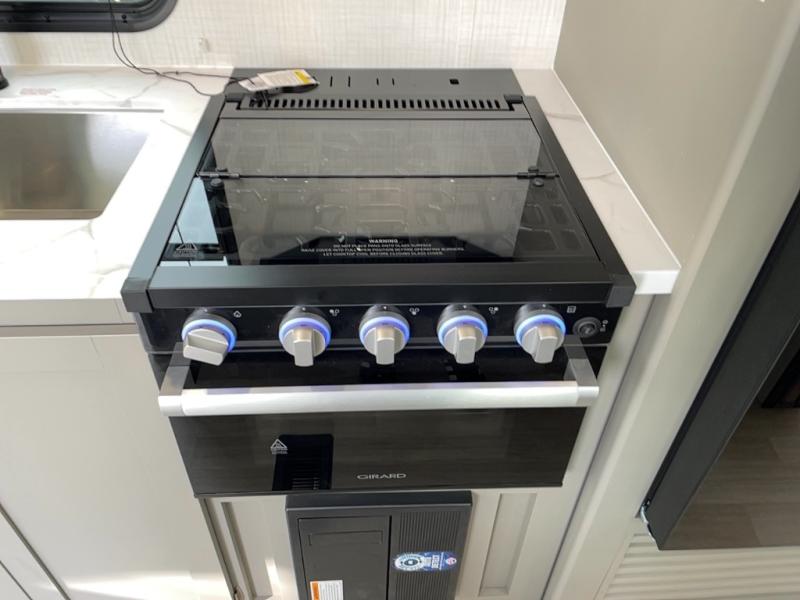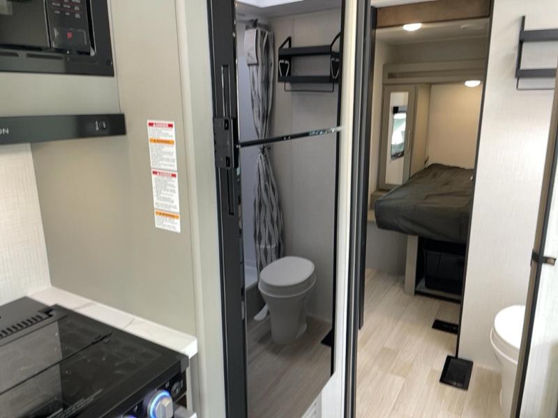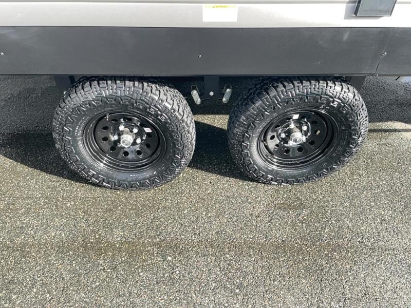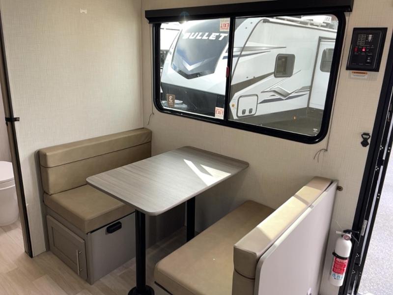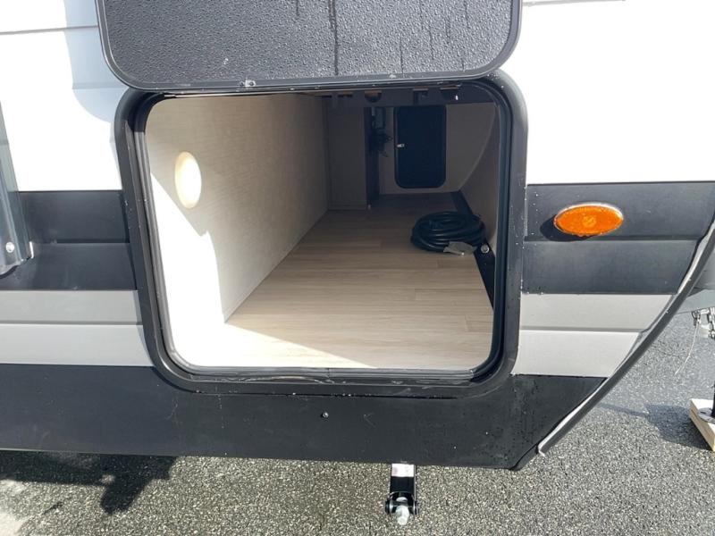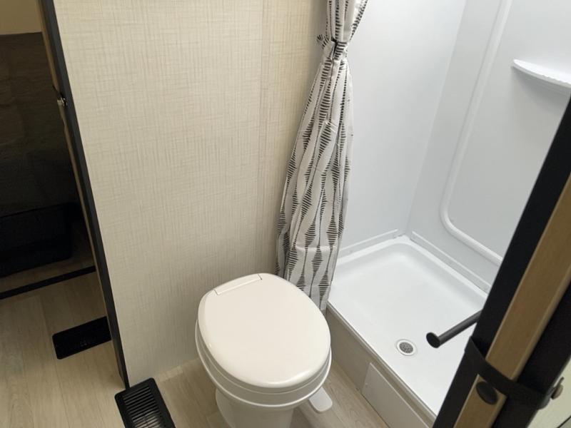 This travel trailer features dual entry doors, allowing you to enter in through the front master bedroom or the rear living room! The rear sofa with end tables provides a place to relax each day, and the booth dinette gives you a place to dine together. And both of these pieces of furniture can double as sleeping space for guests! A three-burner cooktop and air fryer microwave will let you make meals each day, and a 12V refrigerator and pantry will keep food stored away. The walk-thru bath leads to the front master bedroom where you'll find a walk-around RV Olympic RV queen bed, dual wardrobes and an overhead shelf for tons of storage!