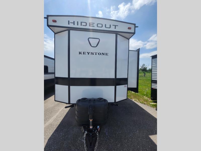 The Keystone Hideout destination trailers will be just what the doctor ordered for a stress-free holiday at your favorite campsite! There are a few exclusive features that you'll only find on a Keystone product, like the color-coded unified wiring, the Tuf-Lok™ thermoplastic duct joiners, the in-floor heating ducts, and the Tru-fit™ slide construction. Each model has a power awning for some shade in the afternoon, and the tinted safety glass windows will prevent the harmful UV rays from getting inside. You'll also have blackout night shades that you can close when you want privacy and one-piece pressed countertops that will be easy to keep clean.