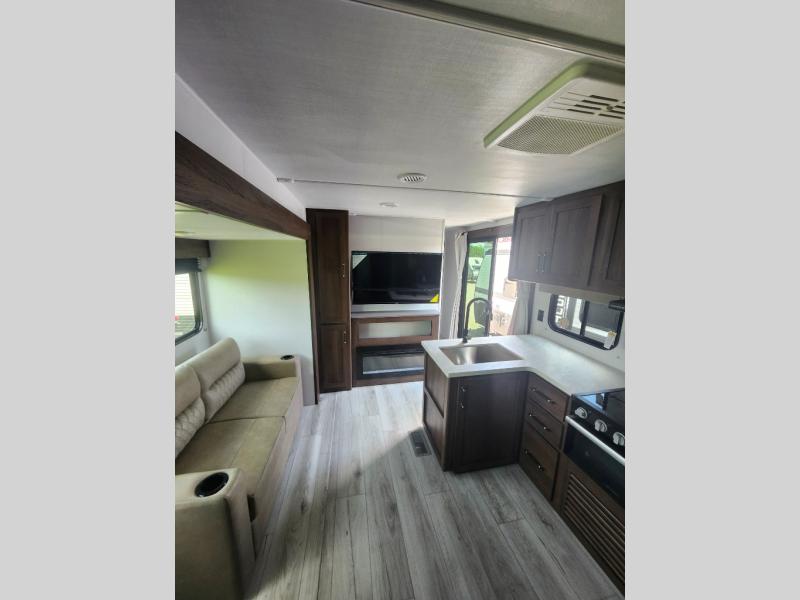 The Keystone Hideout destination trailers will be just what the doctor ordered for a stress-free holiday at your favorite campsite! There are a few exclusive features that you'll only find on a Keystone product, like the color-coded unified wiring, the Tuf-Lok™ thermoplastic duct joiners, the in-floor heating ducts, and the Tru-fit™ slide construction. Each model has a power awning for some shade in the afternoon, and the tinted safety glass windows will prevent the harmful UV rays from getting inside. You'll also have blackout night shades that you can close when you want privacy and one-piece pressed countertops that will be easy to keep clean.