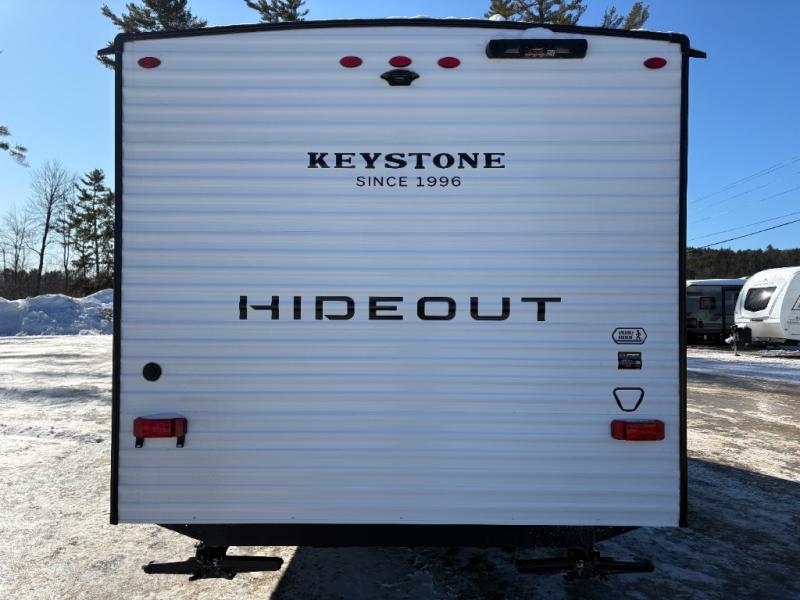 With any Hideout Mini travel trailer by Keystone, you will enjoy lightweight towing thanks to their single axle! The XL tinted safety glass windows are ultra durable, and the power awning will provide protection from the sun as you relax in your camp chairs outside. Each model includes blackout night shades, LED lighting, plus many more interior comforts. There is also a 20K BTU furnace to keep you comfortable, plus a tankless water heater for endless hot showers!