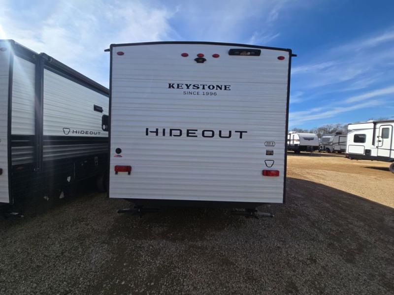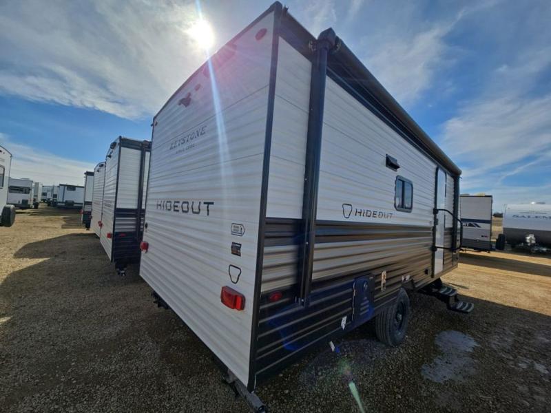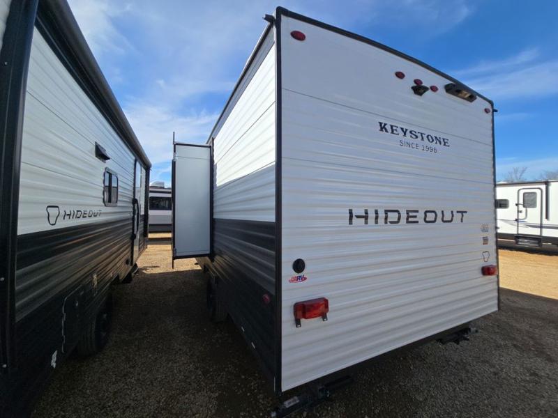 With any Hideout Mini travel trailer by Keystone, you will enjoy lightweight towing thanks to their single axle! The XL tinted safety glass windows are ultra durable, and the power awning will provide protection from the sun as you relax in your camp chairs outside. Each model includes blackout night shades, LED lighting, plus many more interior comforts. There is also a 20K BTU furnace to keep you comfortable, plus a tankless water heater for endless hot showers!