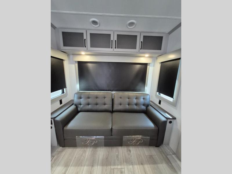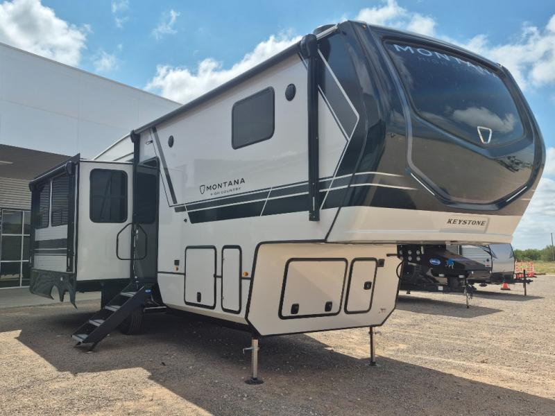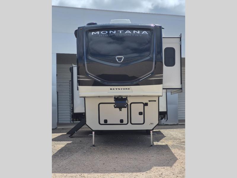 Live the high life with a Keystone Montana High Country fifth wheel! You'll have all the luxury you need with these units. They come with a MaxTurn™ front cap with KeyShield™ automotive-grade paint, a fully walkable roof with Alpha seamless TPO membrane system, and an insulated underbelly with forced hot air and electric tank heaters. The MORryde CRE3000 suspension with wet bolts helps provide a smooth tow, and the Ground Control® four-point electric auto-leveling with hitch memory will make set-up quite easy. The interior is elegantly appointed with the Thomas Payne Collection furniture, hardwood decorative slide-out fascia, Beauflor® vinyl throughout, accent crown molding, and premium solid surface kitchen countertops.