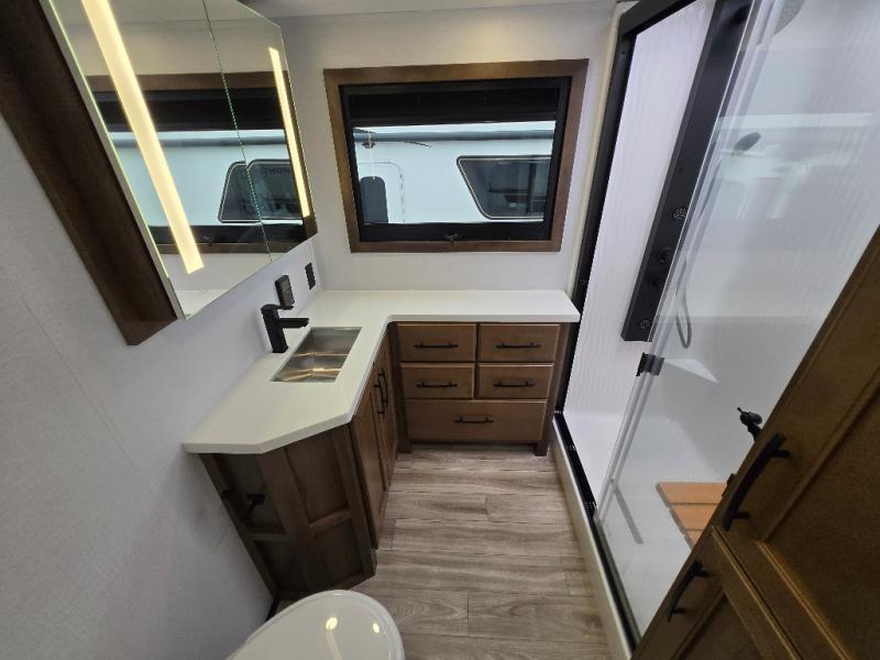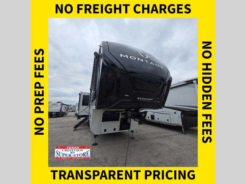 Enjoy luxury, innovation, and the outdoors in any one of Montana's finest fifth wheels. Each set the standard with exceptional features, and exciting factory installed options to provide you a great home on the road. Keystone's 12" I-beam chassis with z-frame technology provides a strong and durable foundation to your fifth wheel, and the four-season living package will help extend your camping season. There are also square frameless windows outside, along with storage solutions, and a hydraulic leveling system that will have you set up in no-time! Inside, you'll love the hardwood cabinetry, solid surface countertops, spacious showers, and cozy bedrooms!