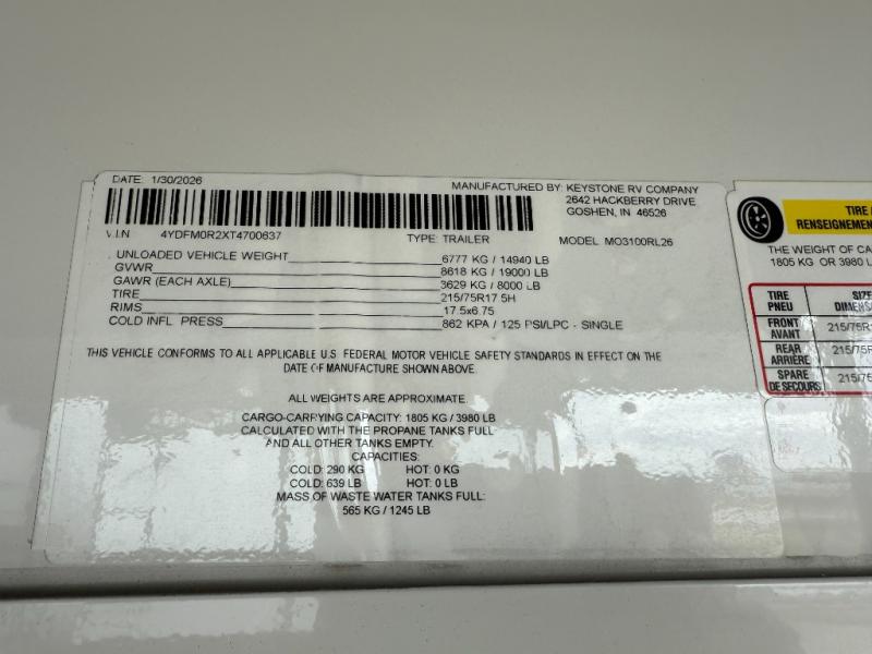 New 2026 Keystone RV Montana 3100RL Fifth Wheel