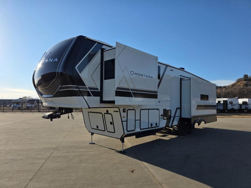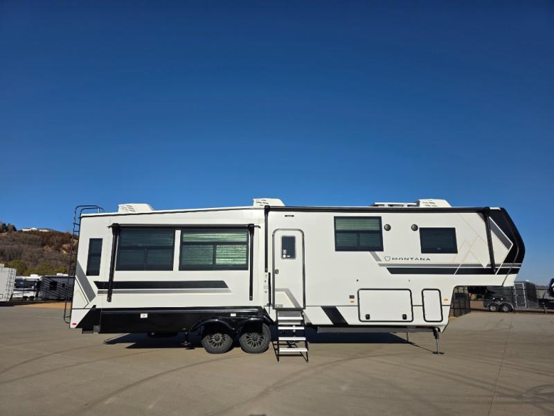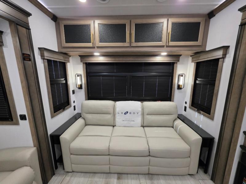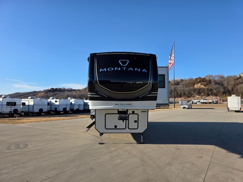 Enjoy luxury, innovation, and the outdoors in any one of Montana's finest fifth wheels. Each set the standard with exceptional features, and exciting factory installed options to provide you a great home on the road. Keystone's 12" I-beam chassis with z-frame technology provides a strong and durable foundation to your fifth wheel, and the four season living package will help extend your camping season. A few other construction features you will appreciate include a MORryde CRE3000 suspension, a fully walkable roof with an alpha seamless TPO membrane system, and 4k square frameless tinted safety glass windows. Each feature stylish interiors with two decor choices paired with beautiful hardwood cabinetry, Beauflor vinyl flooring throughout, central vacuum, plus a La-Z-Boy furniture package for all-around comfort!
