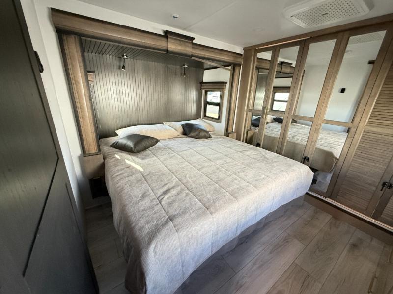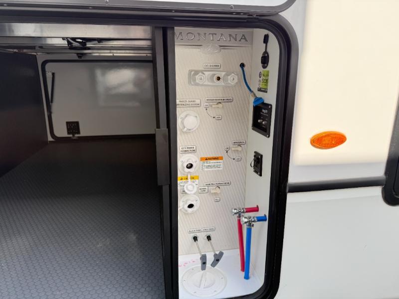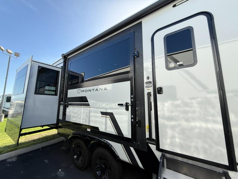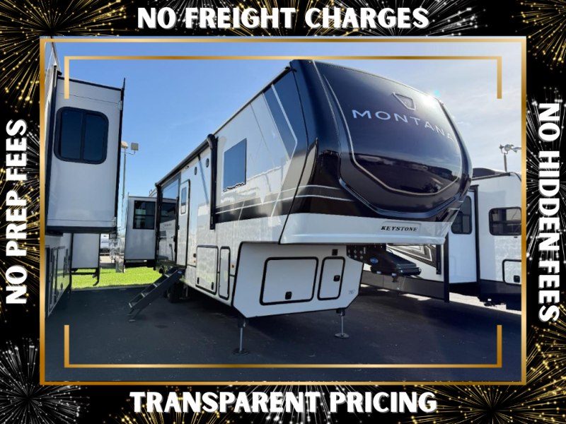 Enjoy luxury, innovation, and the outdoors in any one of Montana's finest fifth wheels. Each set the standard with exceptional features, and exciting factory installed options to provide you a great home on the road. Keystone's 12" I-beam chassis with z-frame technology provides a strong and durable foundation to your fifth wheel, and the four season living package will help extend your camping season. A few other construction features you will appreciate include a MORryde CRE3000 suspension, a fully walkable roof with an alpha seamless TPO membrane system, and 4k square frameless tinted safety glass windows. Each feature stylish interiors with two decor choices paired with beautiful hardwood cabinetry, Beauflor vinyl flooring throughout, central vacuum, plus a La-Z-Boy furniture package for all-around comfort!