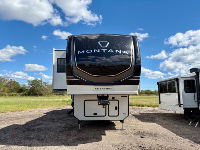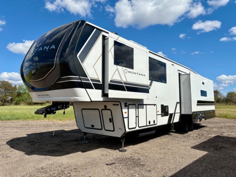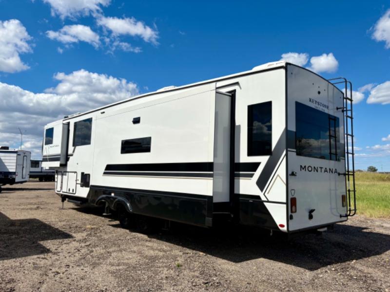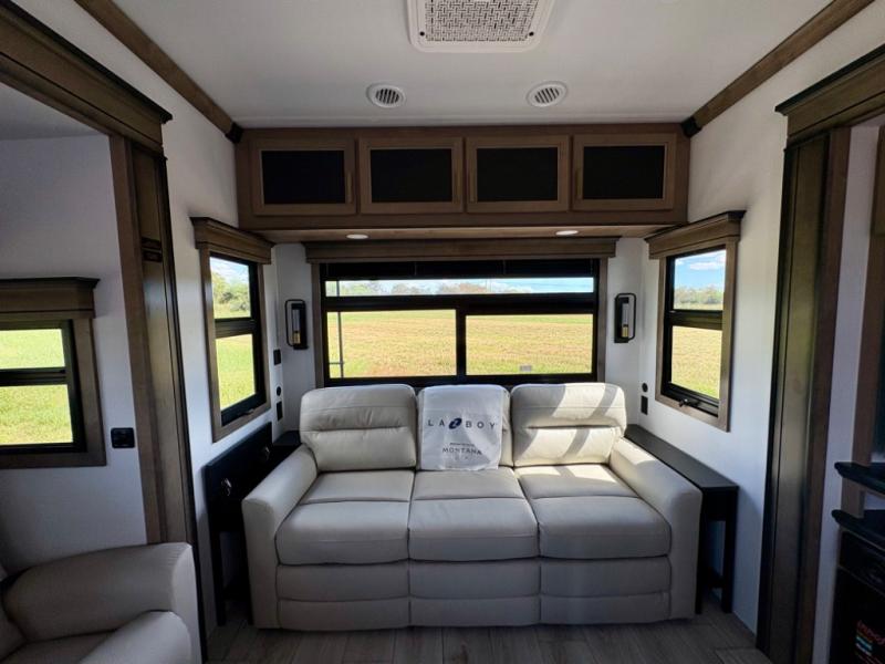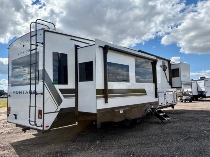 Enjoy luxury, innovation, and the outdoors in any one of Montana's finest fifth wheels. Each set the standard with exceptional features, and exciting factory installed options to provide you a great home on the road. Keystone's 12" I-beam chassis with z-frame technology provides a strong and durable foundation to your fifth wheel, and the four season living package will help extend your camping season. A few other construction features you will appreciate include a MORryde CRE3000 suspension, a fully walkable roof with an alpha seamless TPO membrane system, and 4k square frameless tinted safety glass windows. Each feature stylish interiors with two decor choices paired with beautiful hardwood cabinetry, Beauflor vinyl flooring throughout, central vacuum, plus a La-Z-Boy furniture package for all-around comfort!