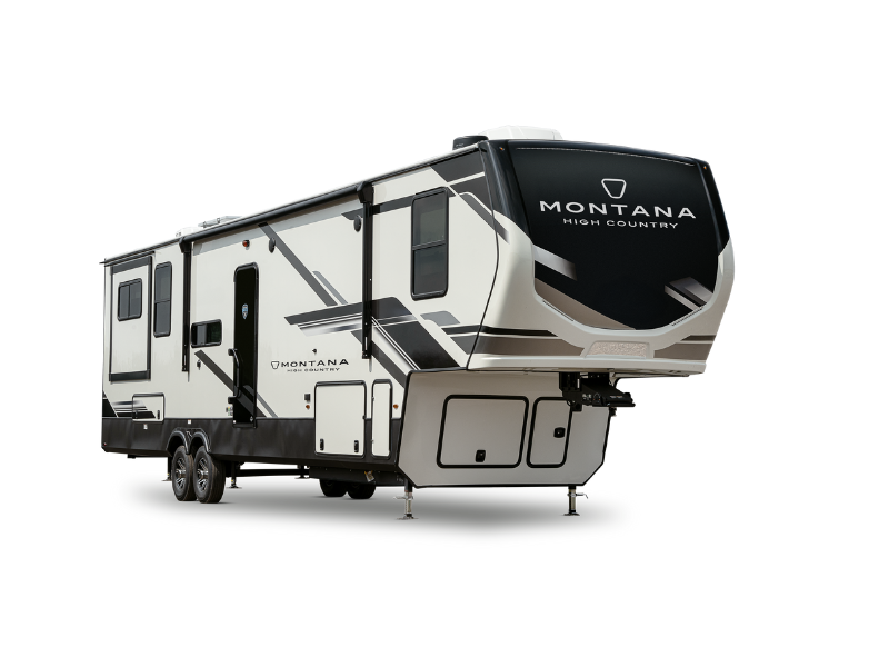 With any Montana High Country fifth wheel by Keystone, you'll find comfort and convenience at every turn! Each unit is built with a fully walkable roof with an Alpha seamless TPO membrane system, 2" thick composite backed high-gloss fiberglass sidewalls, plus an insulated underbelly with forced hot air and electric tank heaters for added protection against the elements. The Blade Pure airflow system provides efficient cooling, and the Tru-Fit slide construction is a durable slide design that minimizes functional motor structural stress and resists leaking. Inside, you'll find roller shades throughout, premium solid surface kitchen countertops, bedside USB and 110V outlets, plus a porcelain foot flush toilet in the bath to name a few comforts.