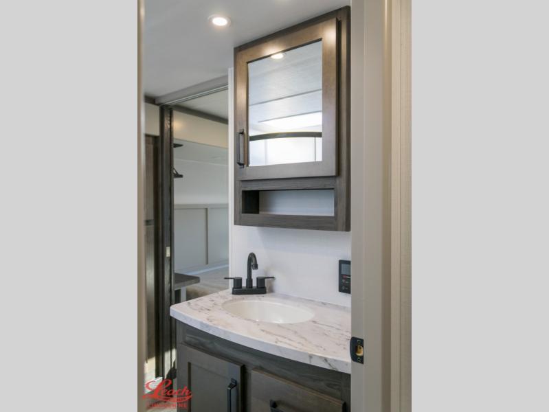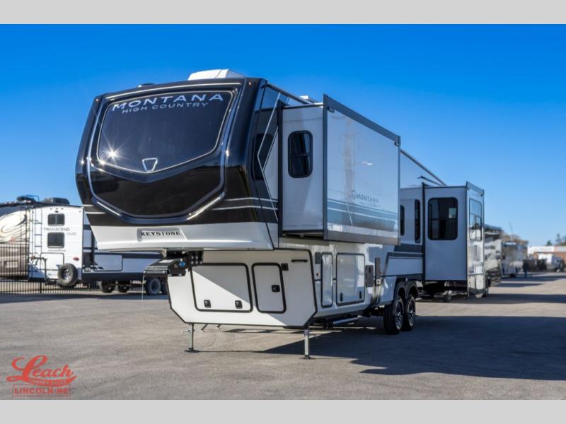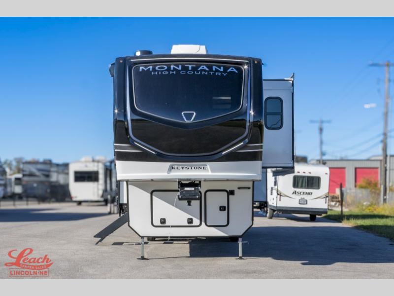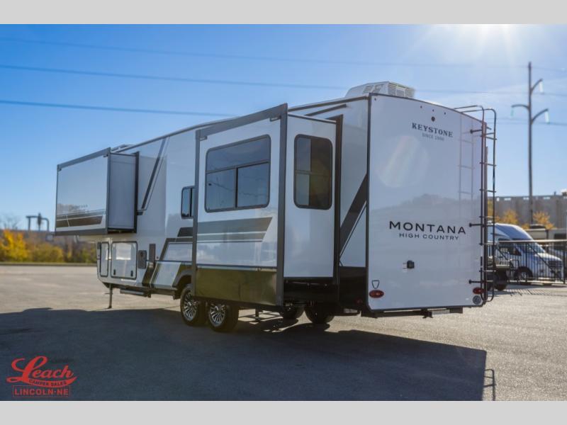 Live the high life with a Keystone Montana High Country fifth wheel! You'll have all the luxury you need with these units. They come with a MaxTurn™ front cap with KeyShield™ automotive-grade paint, a fully walkable roof with Alpha seamless TPO membrane system, and an insulated underbelly with forced hot air and electric tank heaters. The MORryde CRE3000 suspension with wet bolts helps provide a smooth tow, and the Ground Control® four-point electric auto-leveling with hitch memory will make set-up quite easy. The interior is elegantly appointed with the Thomas Payne Collection furniture, hardwood decorative slide-out fascia, Beauflor® vinyl throughout, accent crown molding, and premium solid surface kitchen countertops.