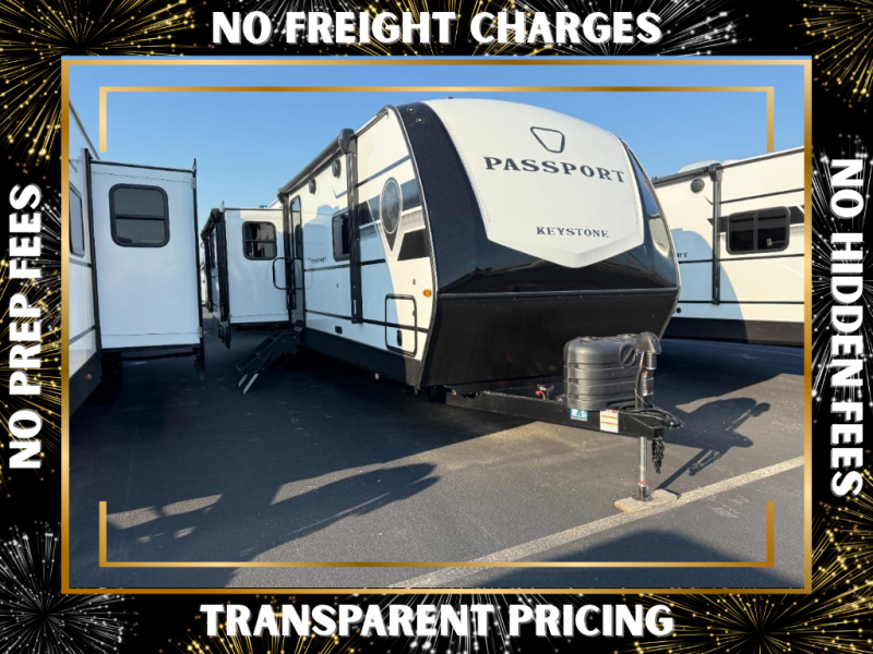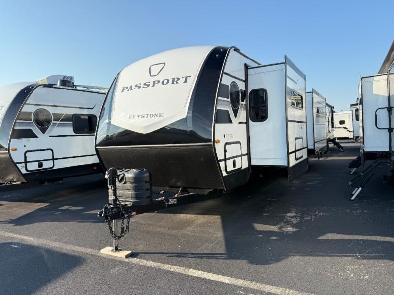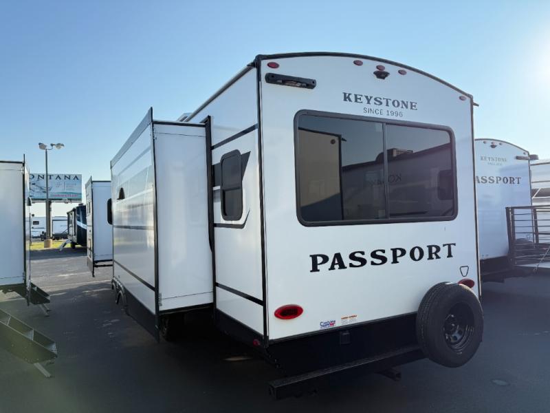 Each one of these Keystone RV Passport travel trailers offer grand style and multi-functional features! They have best-in-class storage for big things like paddle boards and small things like sleeping bags. There's no need for cordless drills and bending over to put the jacks down, simply push a button and the power stabilizer jacks do the rest. The one piece polypropylene underbelly and extended season camping package helps protect your unit's vitals in different weather conditions. Exclusive to Keystone is the Tru-fit slide construction and the Hyper Deck flooring which is more resilient, stronger and lighter than the traditional laminated wood construction, plus it resists water and water damage. Inside, you'll find residential durable Beauflor vinyl flooring, deluxe night shades, bedside outlets/USB ports, and a bath skylight for more natural light and additional head room.