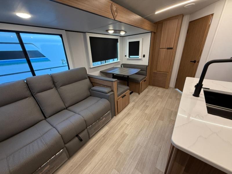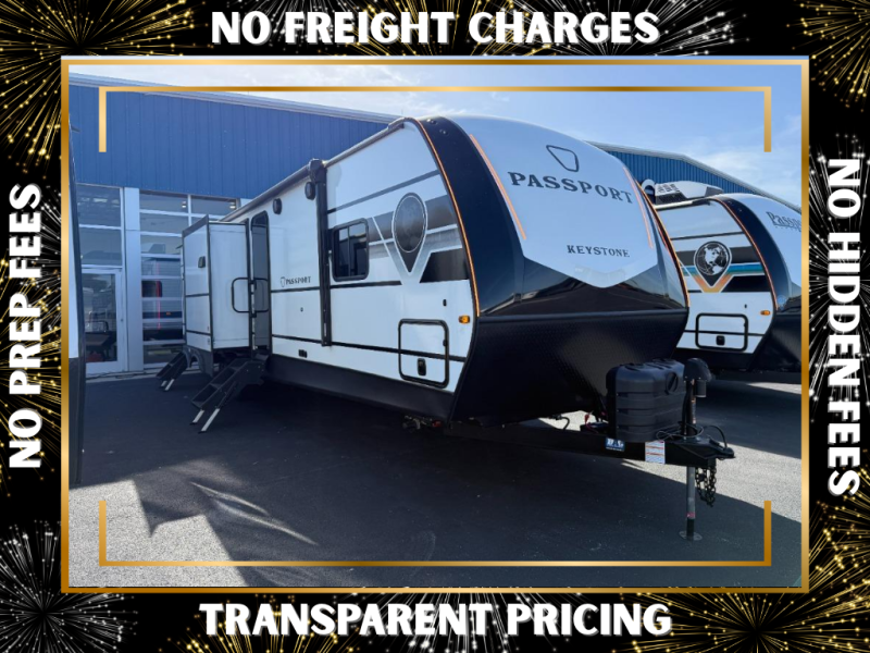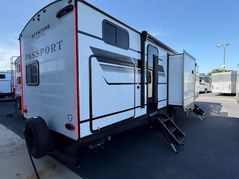 Each one of these Keystone RV Passport travel trailers offer grand style and multi-functional features! They have best-in-class storage for big things like paddle boards and small things like sleeping bags. There's no need for cordless drills and bending over to put the jacks down, simply push a button and the power stabilizer jacks do the rest. The one piece polypropylene underbelly and extended season camping package help protect your unit's vitals in different weather conditions. Exclusive to Keystone is the Tru-fit slide construction and the Hyper Deck flooring which is more resilient, stronger and lighter than the traditional laminated wood construction, plus it resists water and water damage. Inside, you'll find residential durable Beauflor vinyl flooring, deluxe night shades, bedside outlets/USB ports, and a bath skylight for more natural light and additional head room.