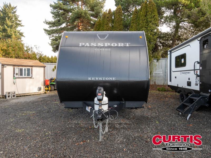 Comfort is found all throughout each one of these Keystone RV Passport Classic travel trailers! They are built with a one-piece polypropylene underbelly to protect your unit's vitals, and a seamless, laminated and gel-coated filon exterior that is sure to turn heads at the campsite. A fully walkable roof makes it easy to access when needed, and the leaf spring straight axles help provide smooth towing. The residential durable Beauflor vinyl flooring throughout and the seamless kitchen countertops will be easy to clean, and you can stay cool on a hot summer day with the A/C unit. Come find the Passport Classic that fits your needs best!