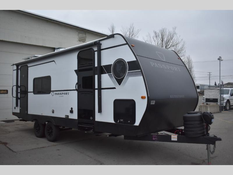 Comfort is found all throughout each one of these Keystone RV Passport Classic travel trailers! They are built with a heated and enclosed underbelly, tinted safety glass windows, and a fully walkable roof for added durability. There are also leaf spring axles, a new Keyed A-Like locking system, and a new glass entry door with a built-in shade for privacy. Inside, you'll find deluxe night shades, residential-style bathroom countertops, LED lighting throughout, and new custom metal window valances to name a few comforts.
