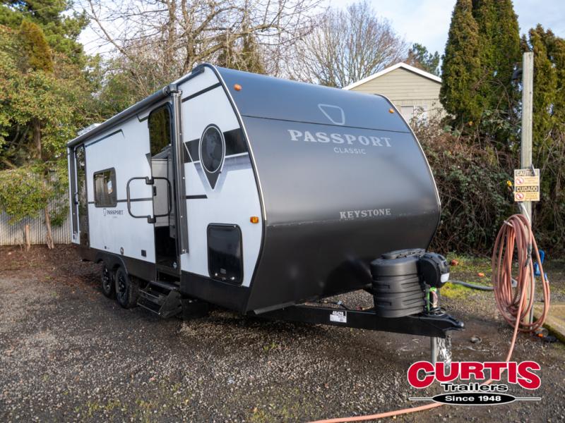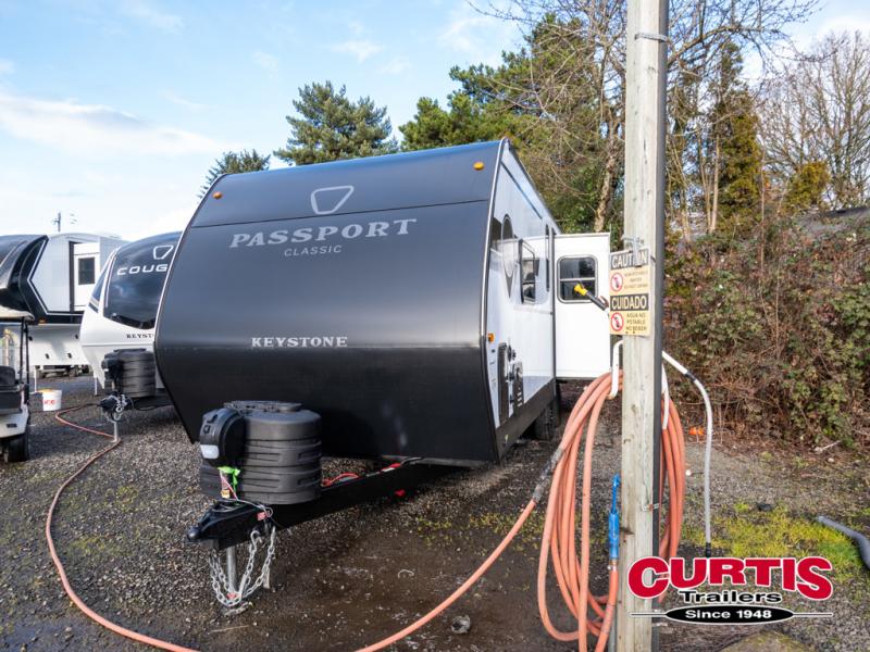 Comfort is found all throughout each one of these Keystone RV Passport Classic travel trailers! They are built with a heated and enclosed underbelly, tinted safety glass windows, and a fully walkable roof for added durability. There are also leaf spring axles, a new Keyed A-Like locking system, and a new glass entry door with a built-in shade for privacy. Inside, you'll find deluxe night shades, residential-style bathroom countertops, LED lighting throughout, and new custom metal window valances to name a few comforts.