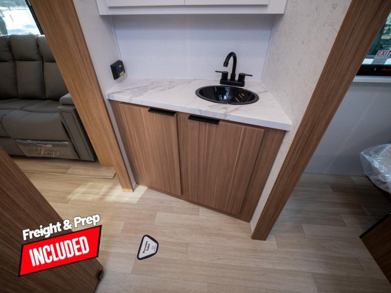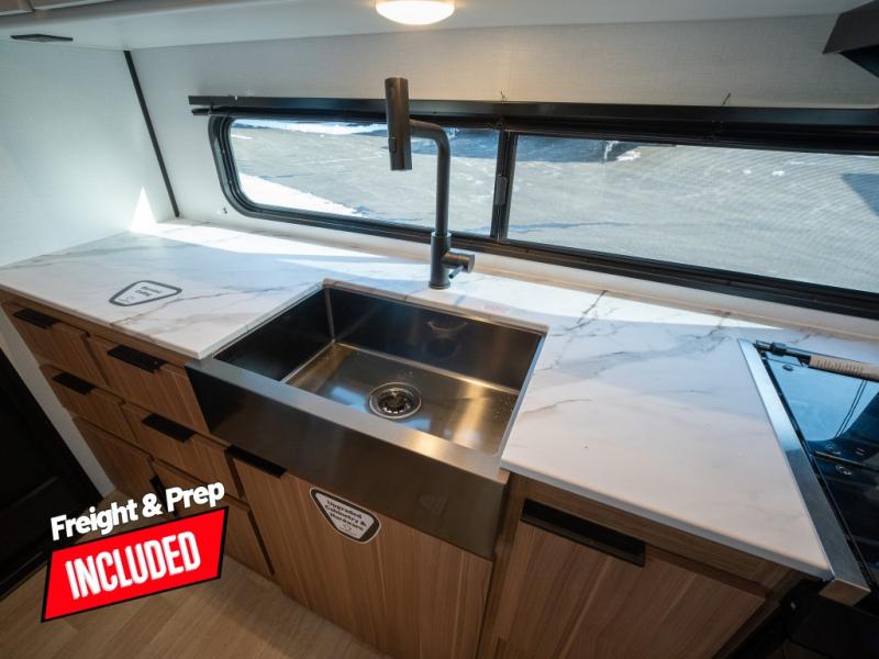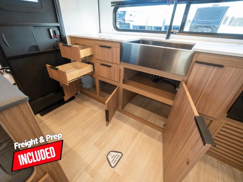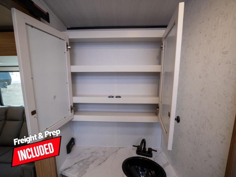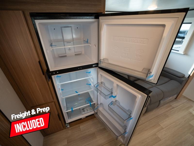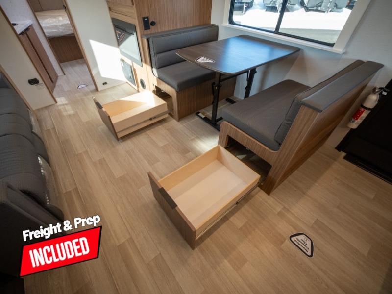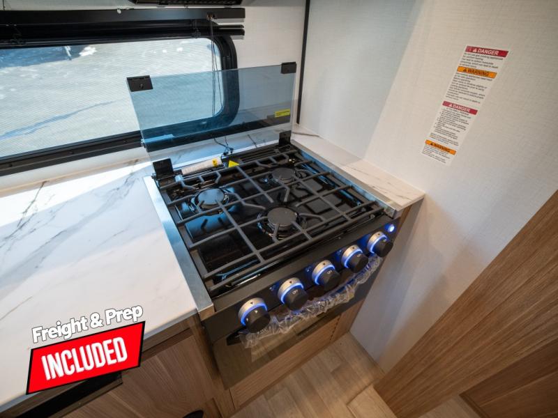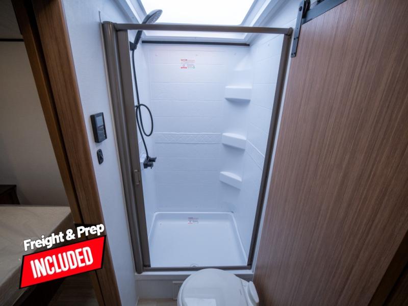 With any Keystone Passport Super Lite travel trailer you will enjoy lightweight towing and lots of interior comforts! The power tongue jack lets you hitch up at the drop of a hat, and the Dexter torsion axle rubber ride suspension will make towing easier than ever. You will appreciate having 4-point power stabilizer jacks for quick setup and an exterior convenience center to monitor tank levels. These trailers feature 5-sided aluminum construction, new premium aluminum wheels, a heated and enclosed underbelly, plus new composite solid entry steps. Inside, you'll enjoy seamless kitchen countertops, interior lights with a dimmer, a rainfall showerhead, and premium pull-down roller shades for added privacy.