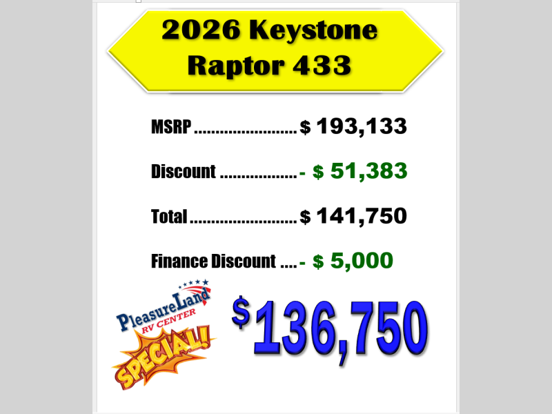 New 2026 Keystone RV Raptor 433 Toy Hauler Fifth Wheel