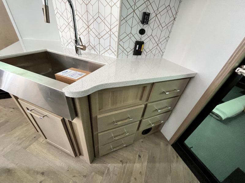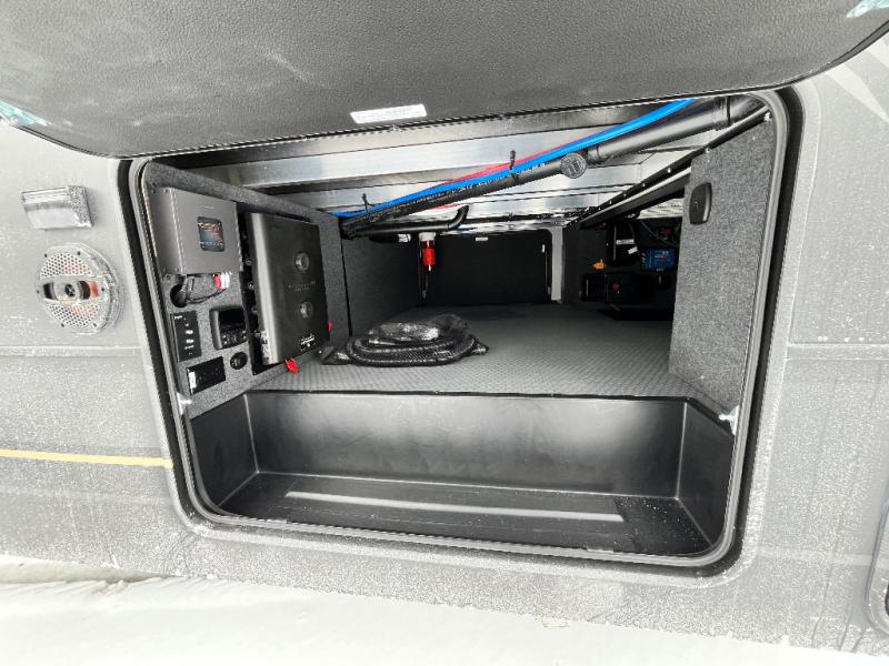 Experience a breath of fresh air with one of these Keystone RV Raptor fifth wheel toy haulers! Their rugged construction consists of a one-piece Alpha Super Flex TPO roof membrane, Dyna Span floor decking, and 5,000 lb. frame-welded tie- downs to keep your toys in place as you travel. Some unexpected conveniences you will appreciate include an Omni-Chill A/C system to keep you cool on those hot summer days, a Furrion backup camera, MaxTurn™ technology with a Helux™ pin box, and a Generation 3 iN-Command smart automation system with Global Connect to make life easier. There is also designer style vinyl flooring throughout, along with new ceiling treatment with LED accent lighting, beach wood and white cabinetry, and many more interior comforts!