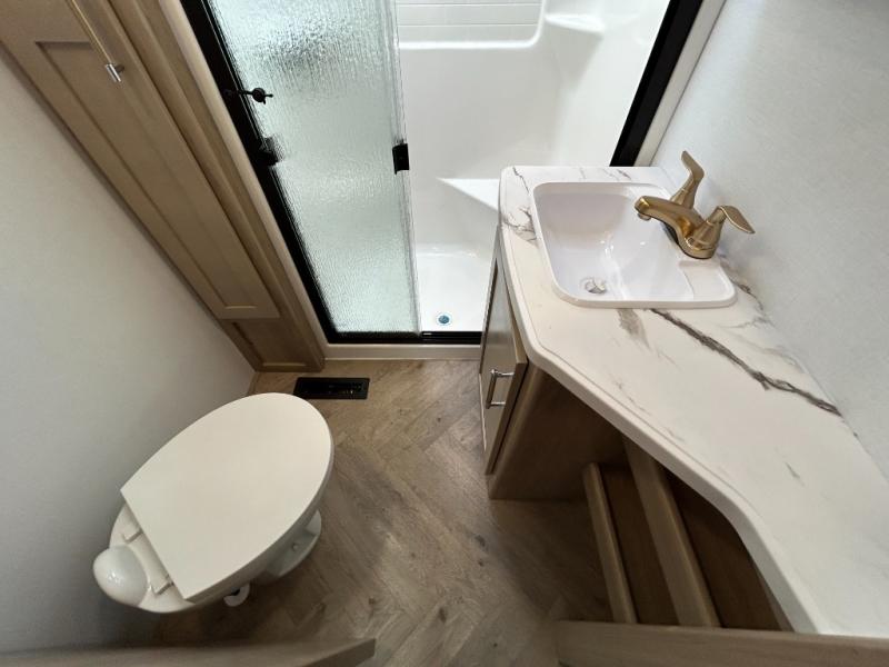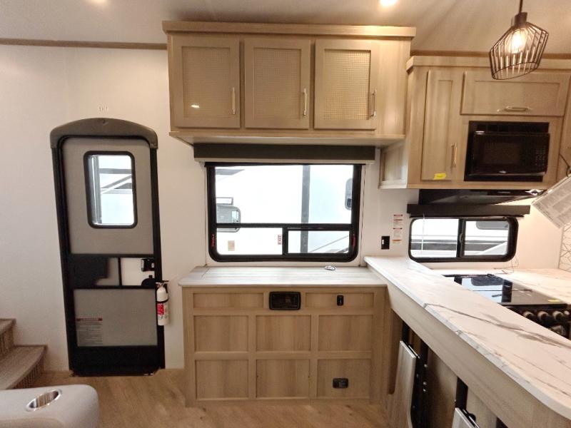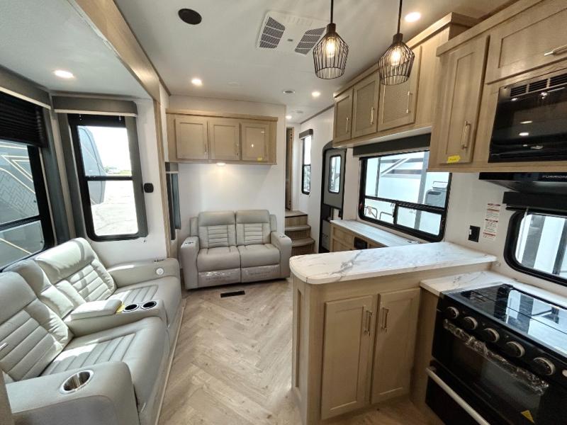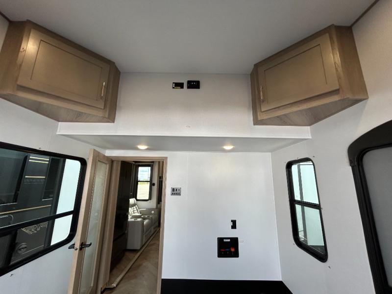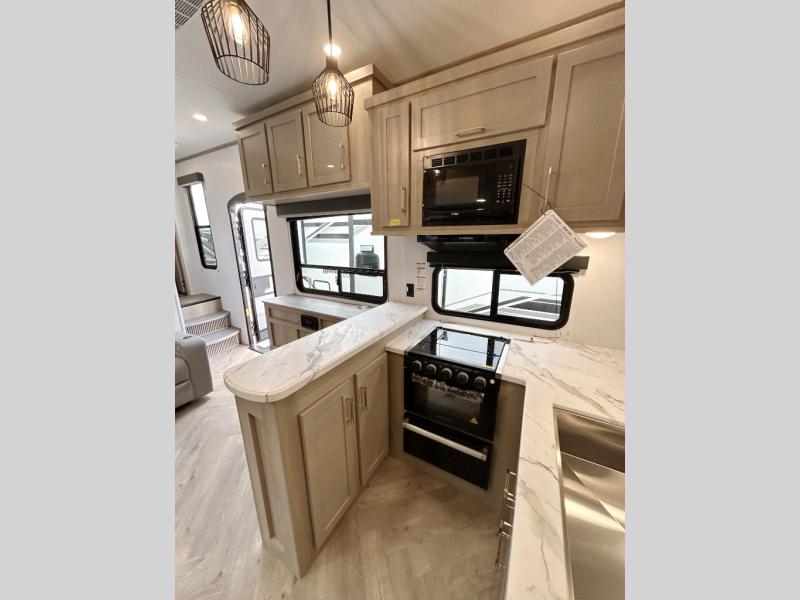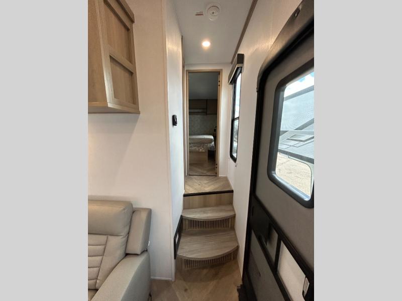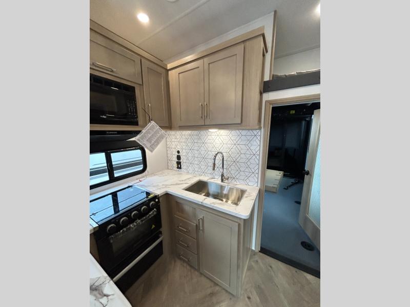 With any Keystone Raptor Carbon Series toy hauler, you will receive a rugged construction from the industry-leading patented 5,000 lb. capacity tie-downs that are welded to the frame to increase hauling safety and security, plus the Dyna Span floor decking in the garage. There is off-grid camping with the Solar Flex which delivers an affordable, high-quality RV solar energy system, and a comfortable interior with the exclusive Omni-Chill technology that offers high-efficiency air conditioning and maximum cooling. Other unexpected conveniences include soft-close hardwood cabinetry allowing you to sneak snacks without others noticing, and designer style flooring throughout for easy care and a stylish look. And each Raptor Carbon Series includes Keystone Exclusives! Now all you have to do is take charge of how you camp in a toy hauler fifth wheel or travel trailer!