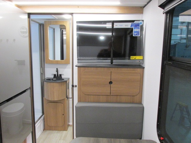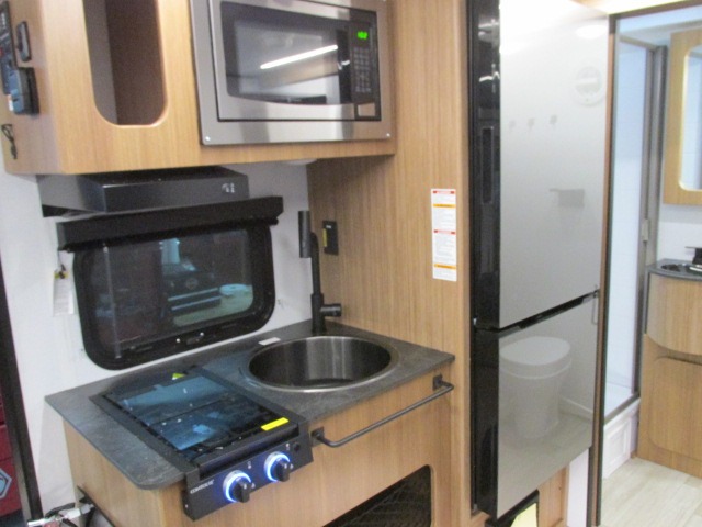 This single axle trailer is both cozy and versatile since there is a fold down sofa/Murphy bed up front! Now you can easily convert seating space into sleeping space, plus there are dual bedside closets to keep your things tidy. A two burner cooktop and air fryer/convection microwave will let you cook meals each day, and a booth dinette provides a place to dine together. You can also choose to add the optional flip-up bunk above the dinette if you need more sleeping space. And don't overlook the full rear bath that will allow you to freshen up without having to leave your camper!