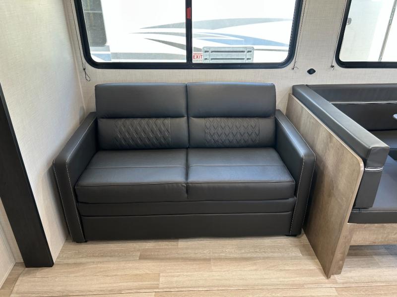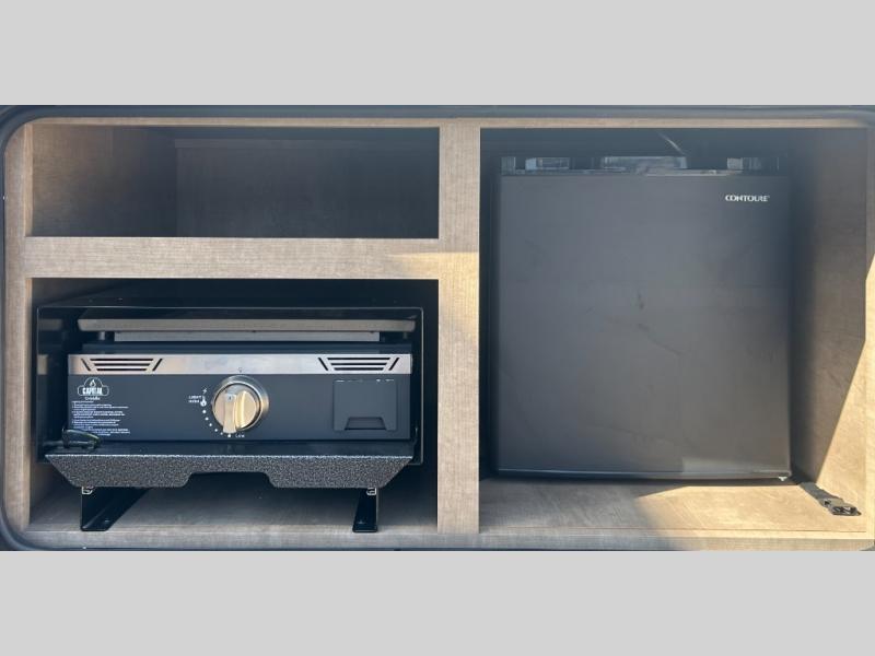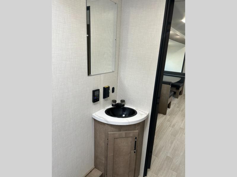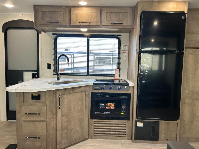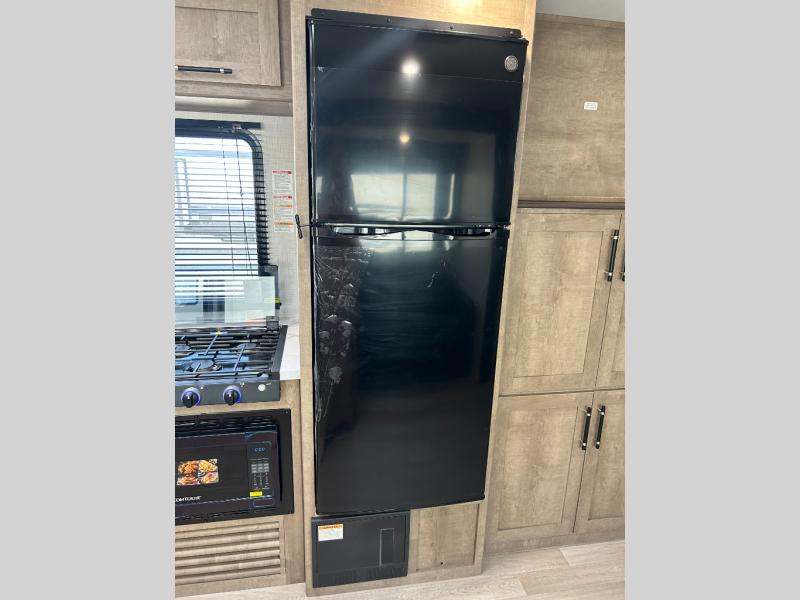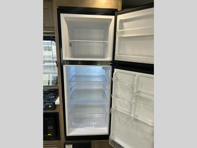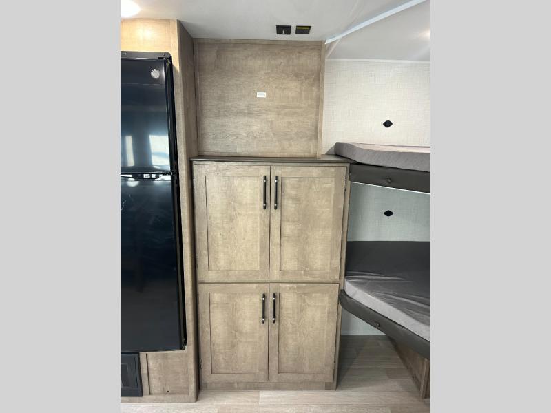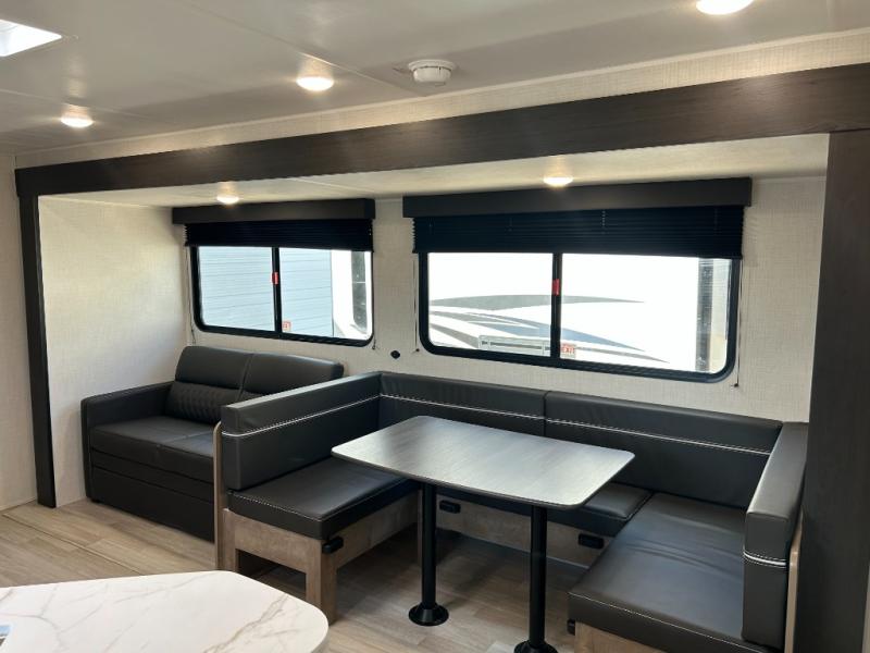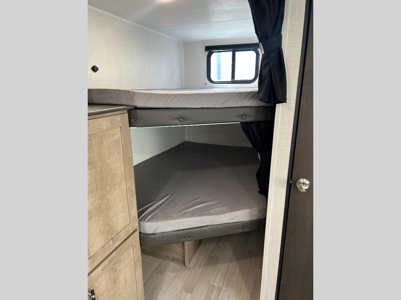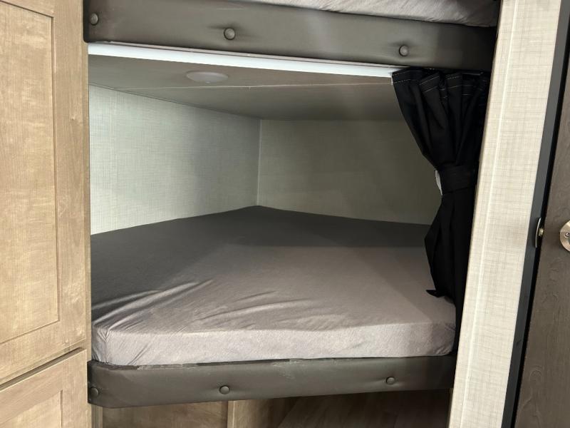 What could be better than camping with double-size bunks for guests? How about a front private bedroom for you, a full bath to clean up in, and a large slide out for maximum space! The chef of your group can prepare breakfast on the three burner gas range in the morning, or use the microwave if you're on the go. There is a U-shaped dinette to dine at, or you can take your plate outdoors to sit under the power awning.
