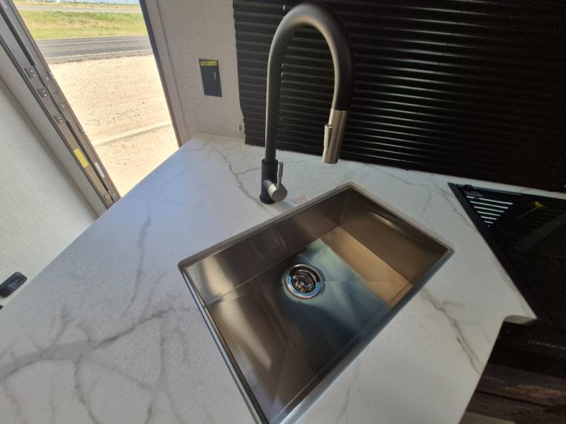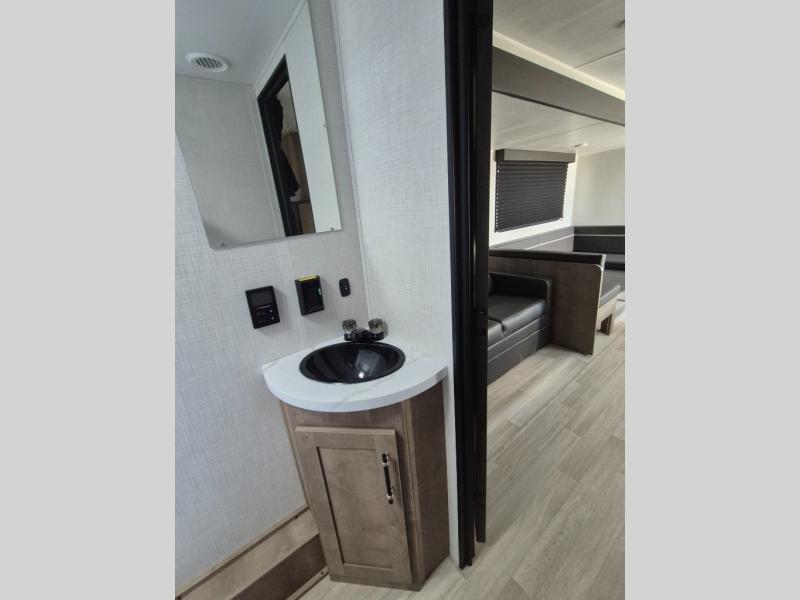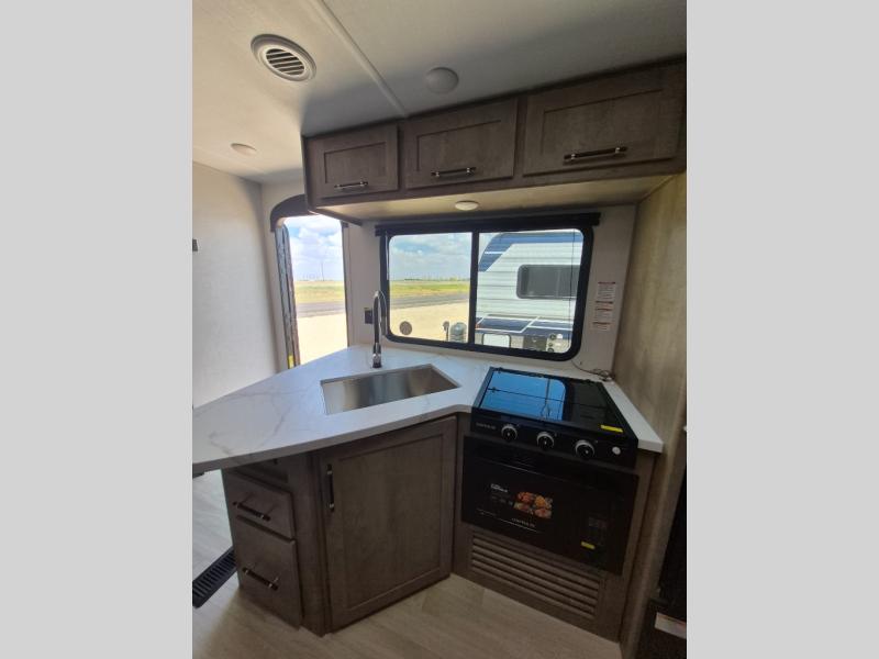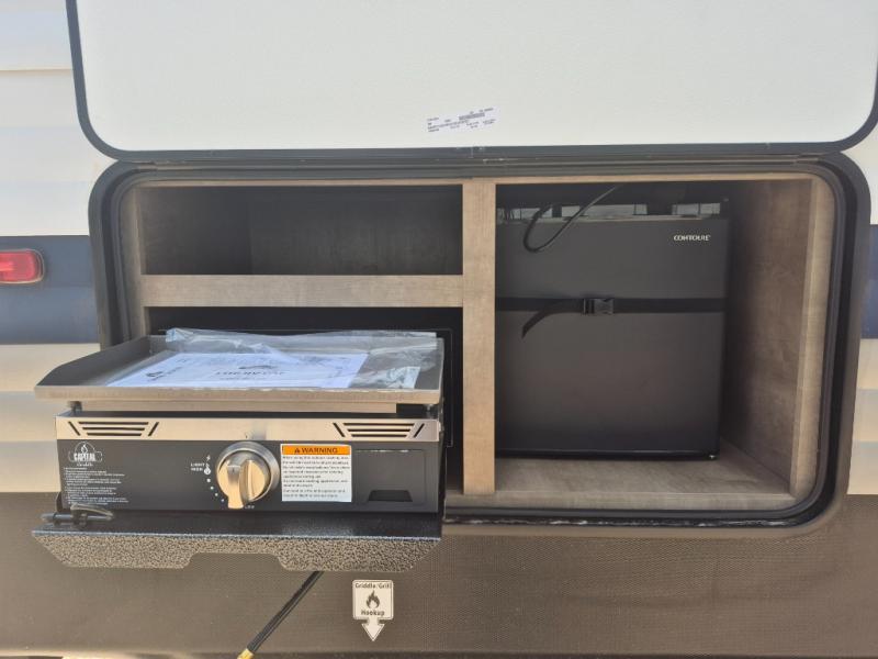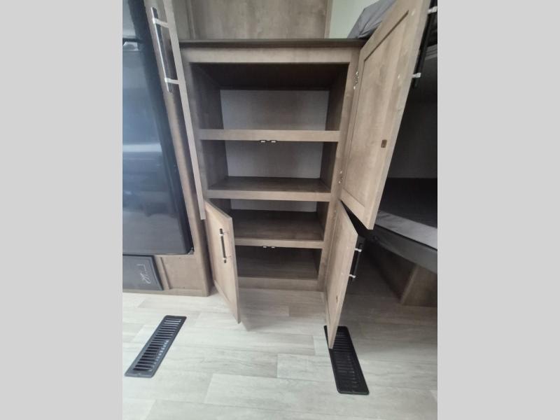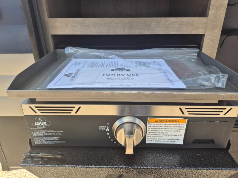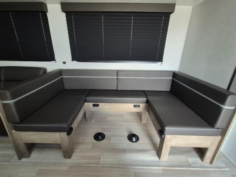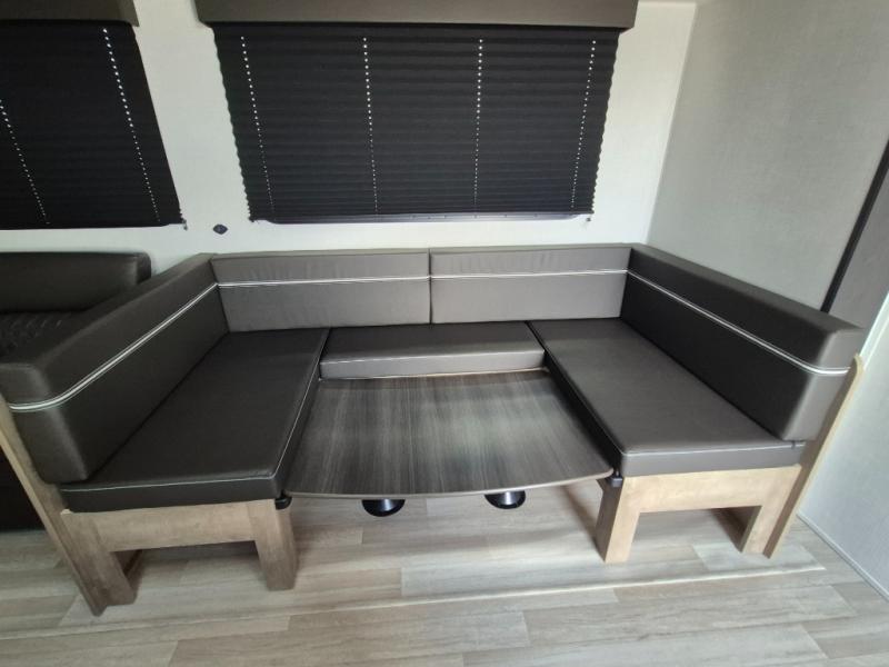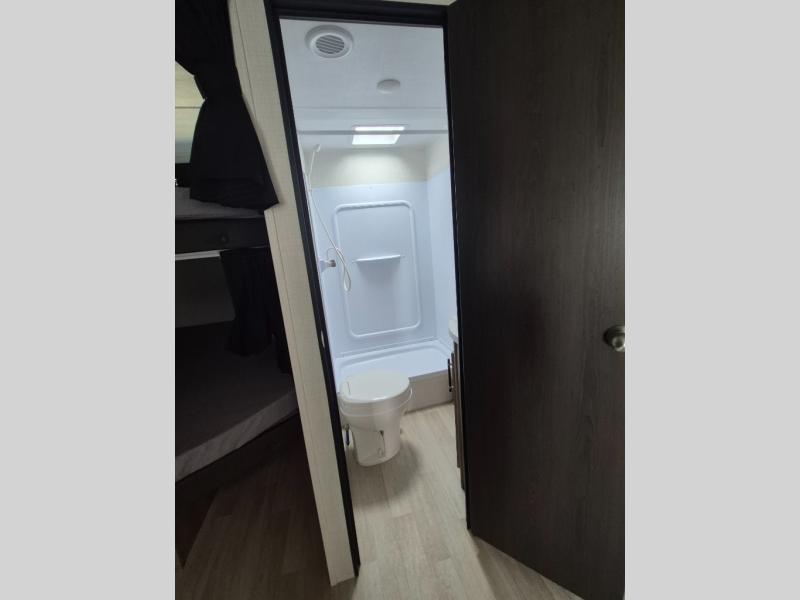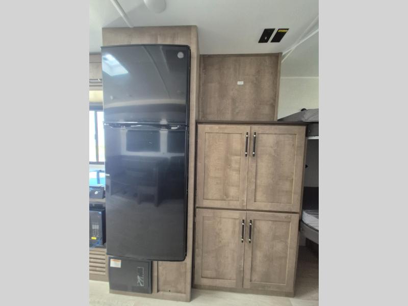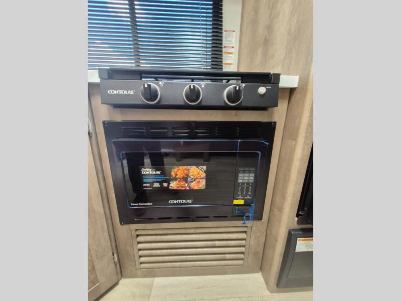 What could be better than camping with double-size bunks for guests? How about a front private bedroom for you, a full bath to clean up in, and a large slide out for maximum space! The chef of your group can prepare breakfast on the three burner gas range in the morning, or use the microwave if you're on the go. There is a U-shaped dinette to dine at, or you can take your plate outdoors to sit under the power awning.