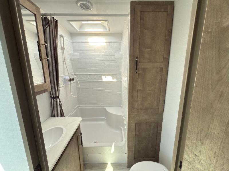 With any Springdale travel trailer by Keystone you will enjoy convenient amenities and comfortable camping features at every turn. The aluminum exterior will be easy to clean, and the power awning provides protection against the hot summer sun. There is also an exterior shower, a walkable roof, and an XL entry assist handle to safely enter and exit the unit. You will find many comforts inside, including a stainless steel sink, ample storage space for your belongings, and cozy sleeping spaces. Start a new adventure today in a Springdale travel trailer!