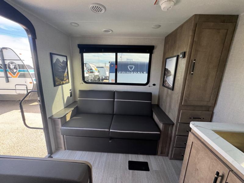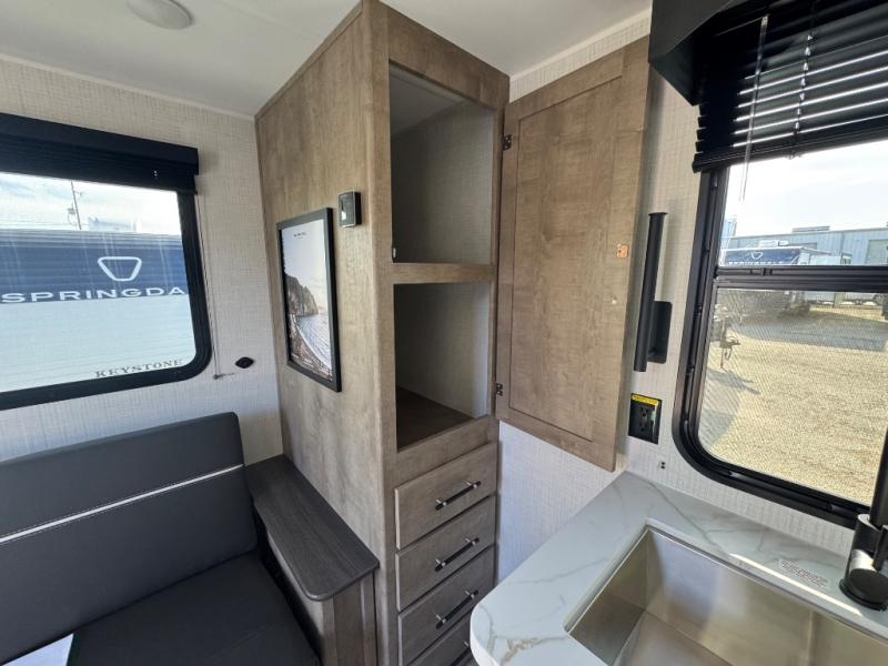 The Springdale Classic travel trailers by Keystone will provide you and your family many great outdoor experiences and it will also be kind to your pocketbook. Each one is constructed with a walkable roof, Solid Step entry steps and tinted safety glass windows. There are also heavy-duty stabilizer jacks, along with an outside shower, a power awning with LED lights, and Furrion backup camera prep. Inside, you'll find blackout night shades, pressed membrane premium countertops, a stainless-steel sink, and LED lighting to keep your space well lit.
