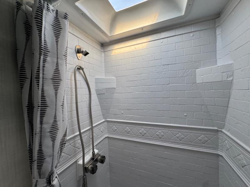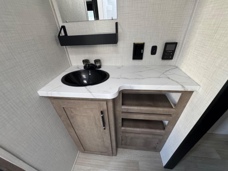 Comfort comes easy in this dual entry travel trailer! You can enter in through the front master bedroom with an Olympic RV queen bed or the rear living area with a sofa. There are also two end tables on either side of the sofa plus a spacious pantry for snacks and dry goods. A three-burner cooktop and air fryer microwave will let you make meals each day, and a booth dinette provides a place to dine together. And don't overlook the walk-through bath that is easily accessible from the bedroom or kitchen!