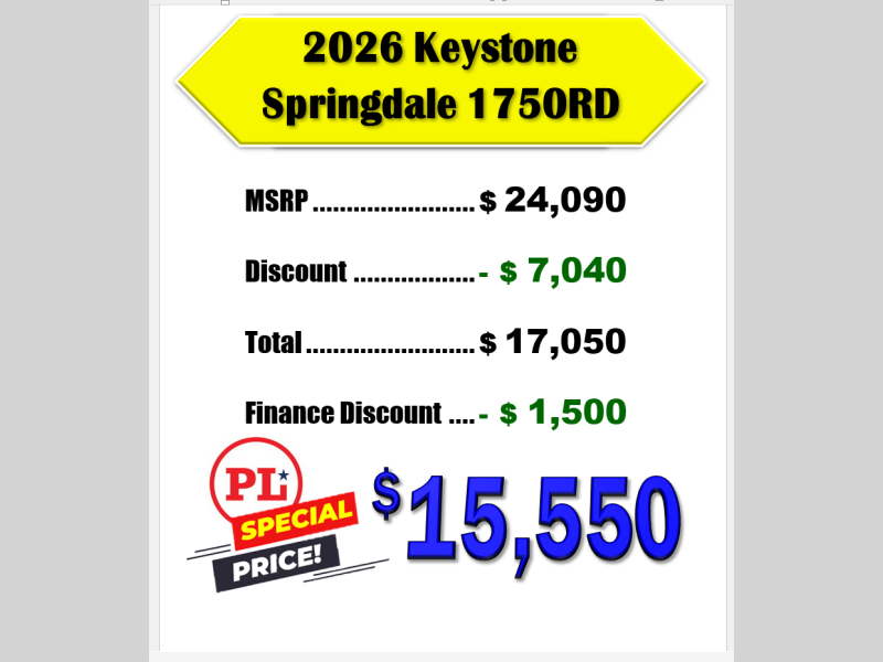 New 2026 Keystone RV Springdale Mini 1750RD Travel Trailer