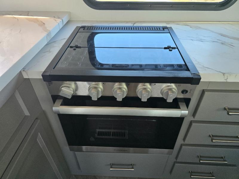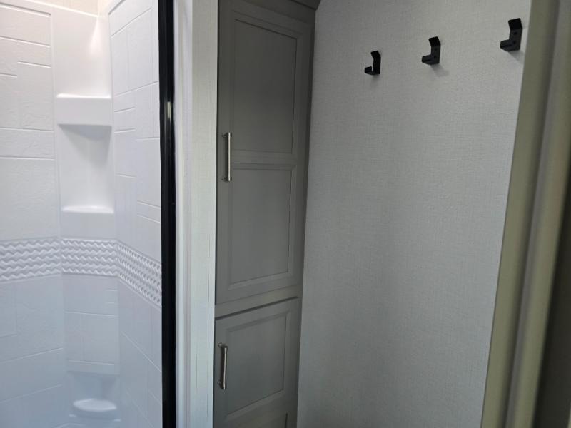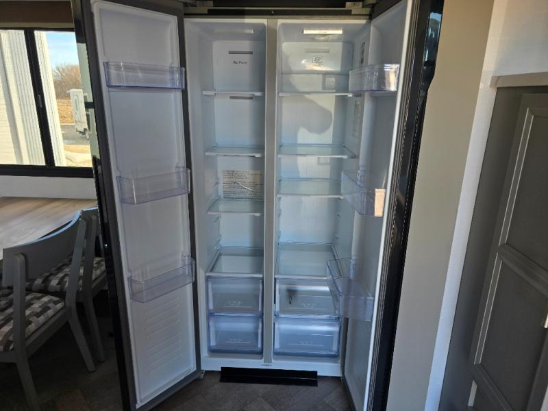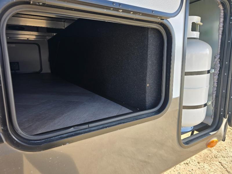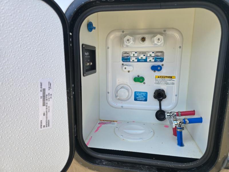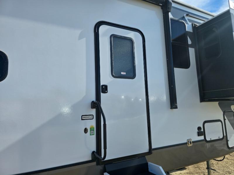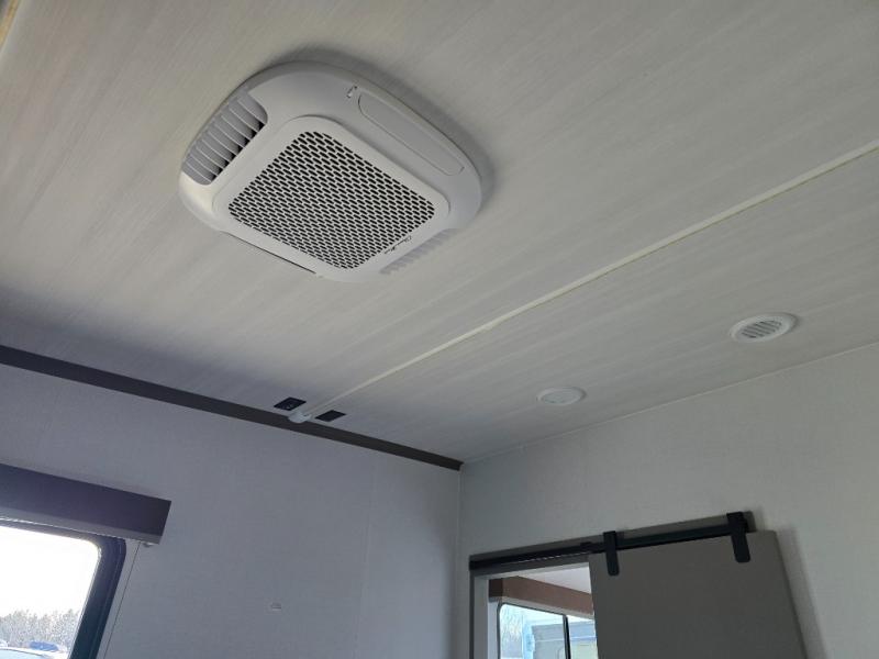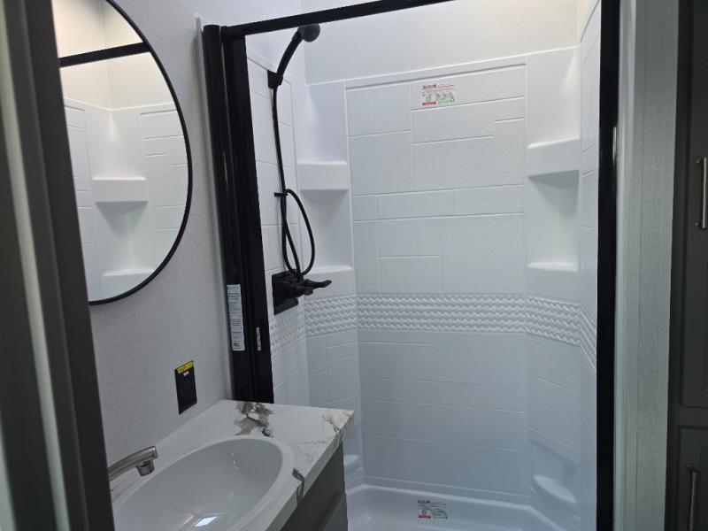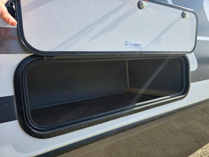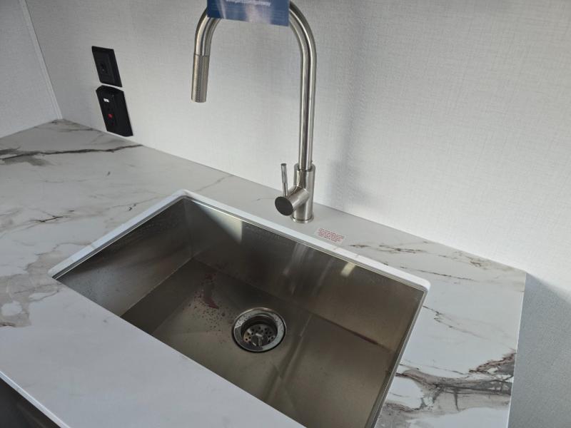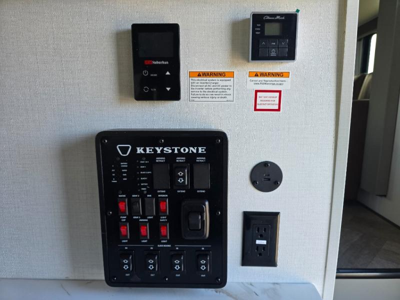 The Sprinter fifth wheels by Keystone feature spacious living areas, plenty of storage, and outstanding towability. Each unit is constructed with 2" thick double welded aluminum frame construction, a fully walkable roof and slide out roof, and dual layer insulation to help extend your camping season. The heated pass-through storage includes lockable slam latch baggage doors so you can easily pack your gear, and the one-touch 4-point leveling system features return hookup memory to have you set up in no-time. Head inside to find DynaSpan Marine Grade floor decking, Thomas Payne luxury collection furniture and residential style seamless marbled countertops to name a few comforts. The Sprinter also includes a Suburban tankless on-demand water heater, black out aluminum wheels, plus a 30k BTU furnace to ensure your comfort!